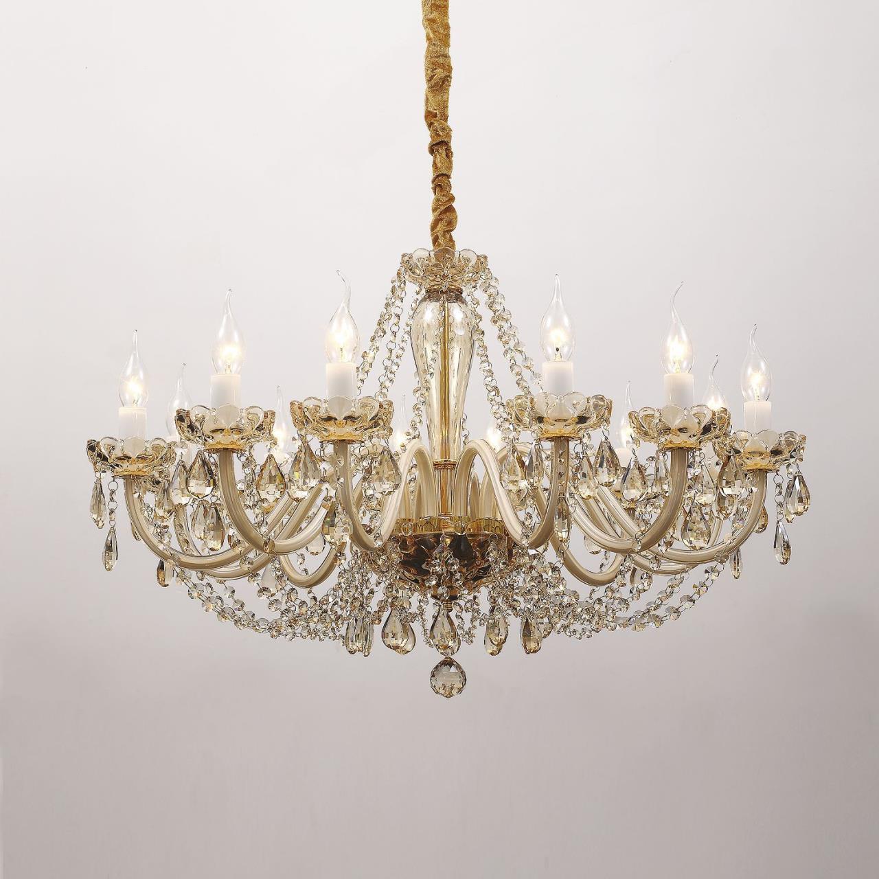 Металлический каркас золотого цвета, хрусталь высшего качества, стеклянные рожки и блюдца цвета "золотое шампанское".