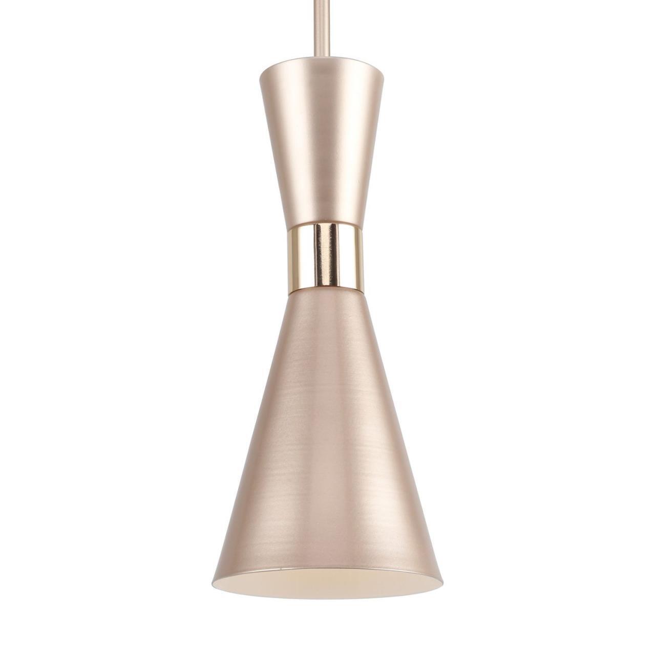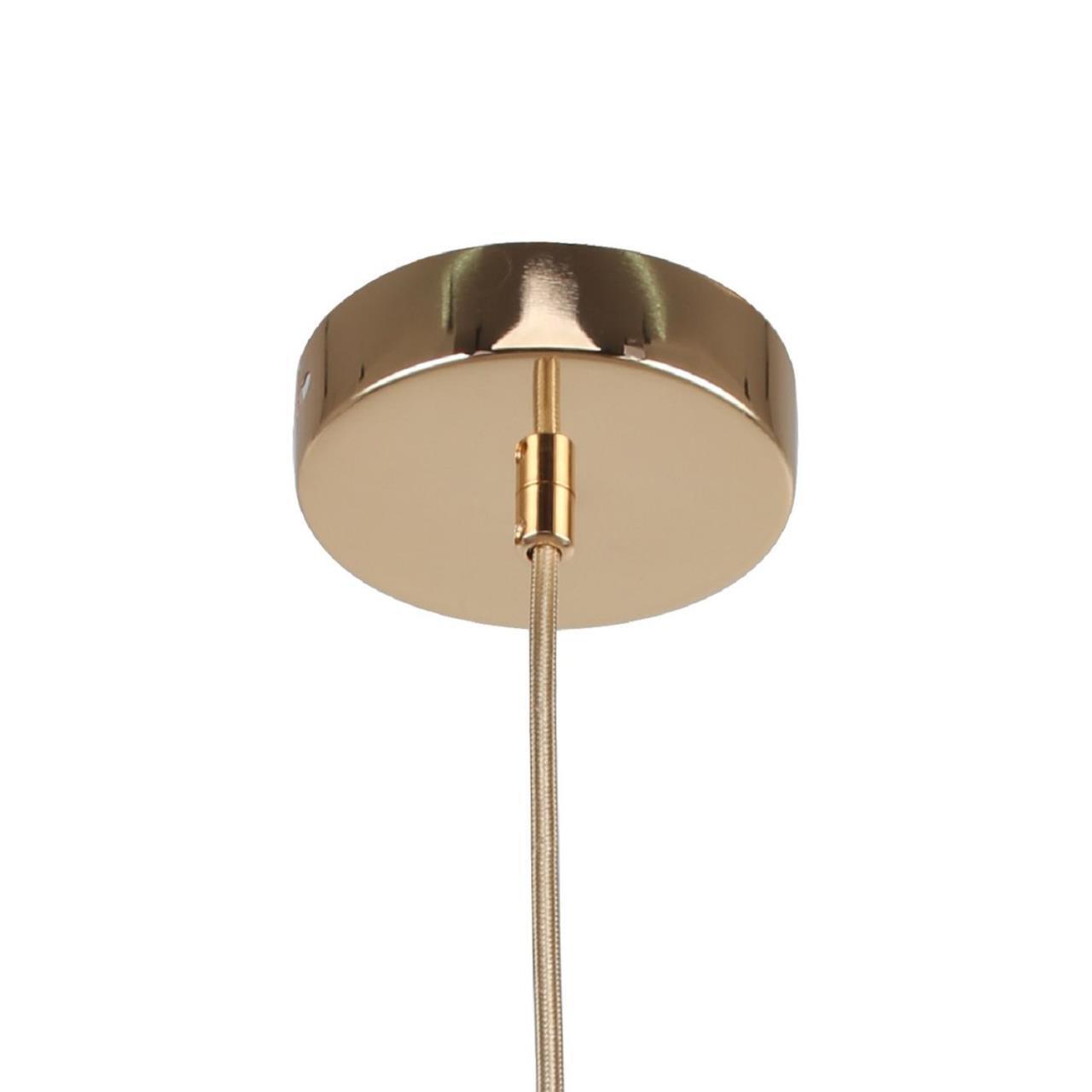 Металлический каркас золотого цвета с золотым основанием, золотой плафон, золотой декоративный элемент, регулируемая высота.