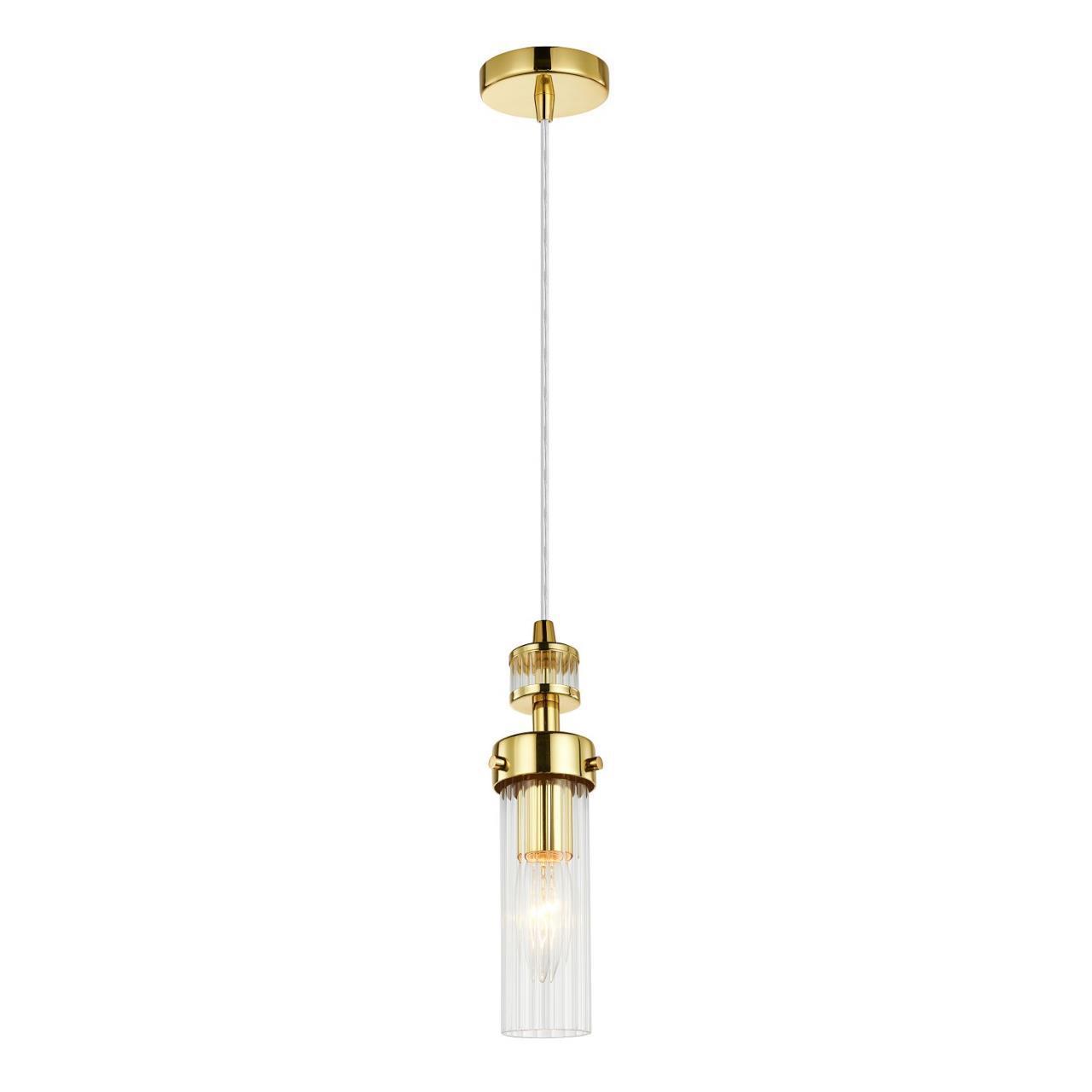 Металлический каркас золотого цвета, плафон из прозрачного рифленого стекла, регулируемая высота.