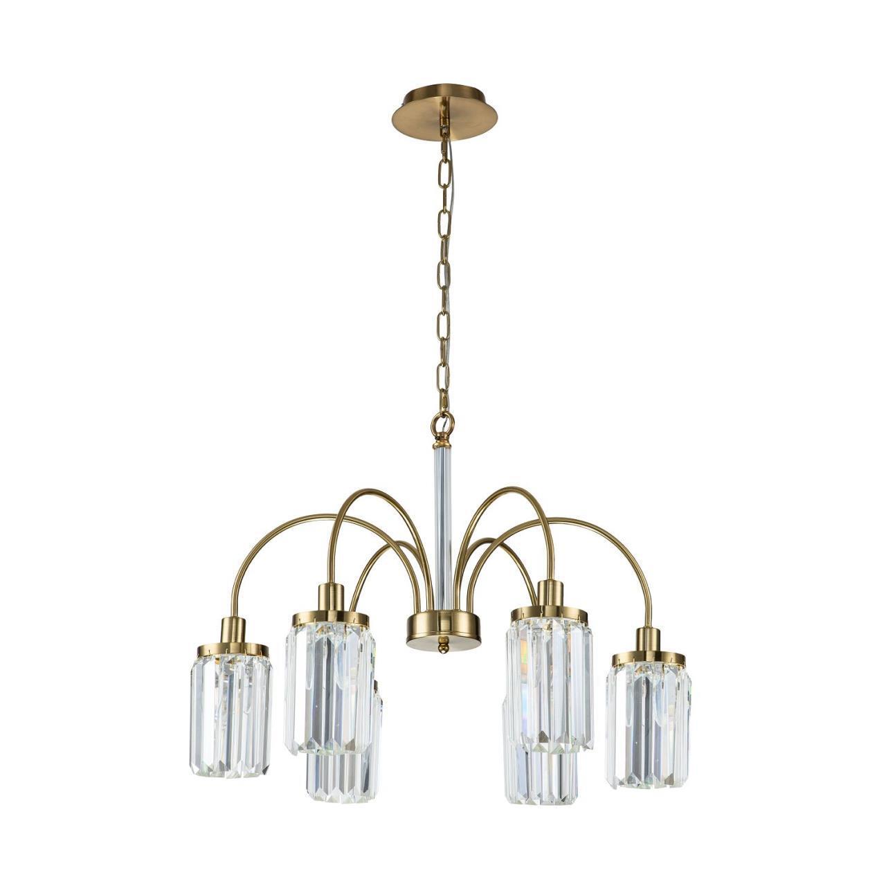 Металлический каркас золотого цвета, плафоны из прозрачных хрустальных элементов.