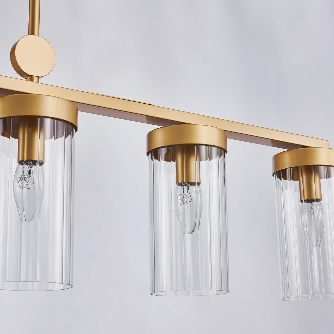 Каркас золотого цвета, плафоны из прозрачного рельефного стекла, регулируемая высота.