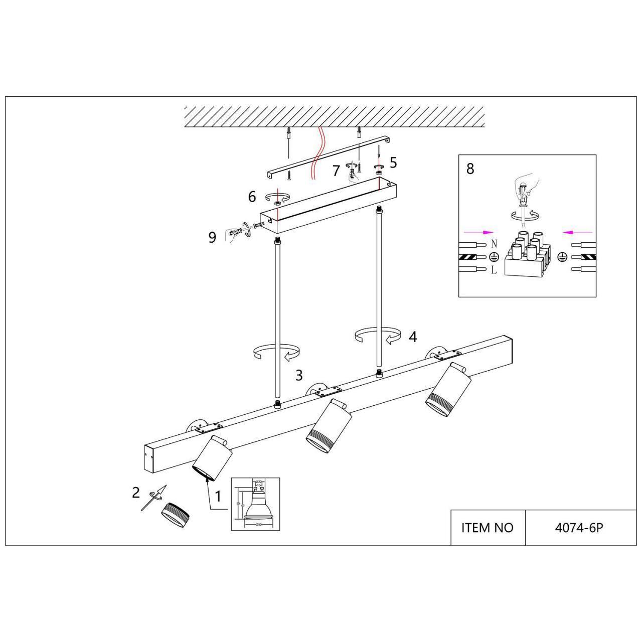 4074-6P, подвесная люстра, L1200xW190xH600, 6xGU10LEDx10W, excluded + LEDx18W, 700LM, 4000K, included