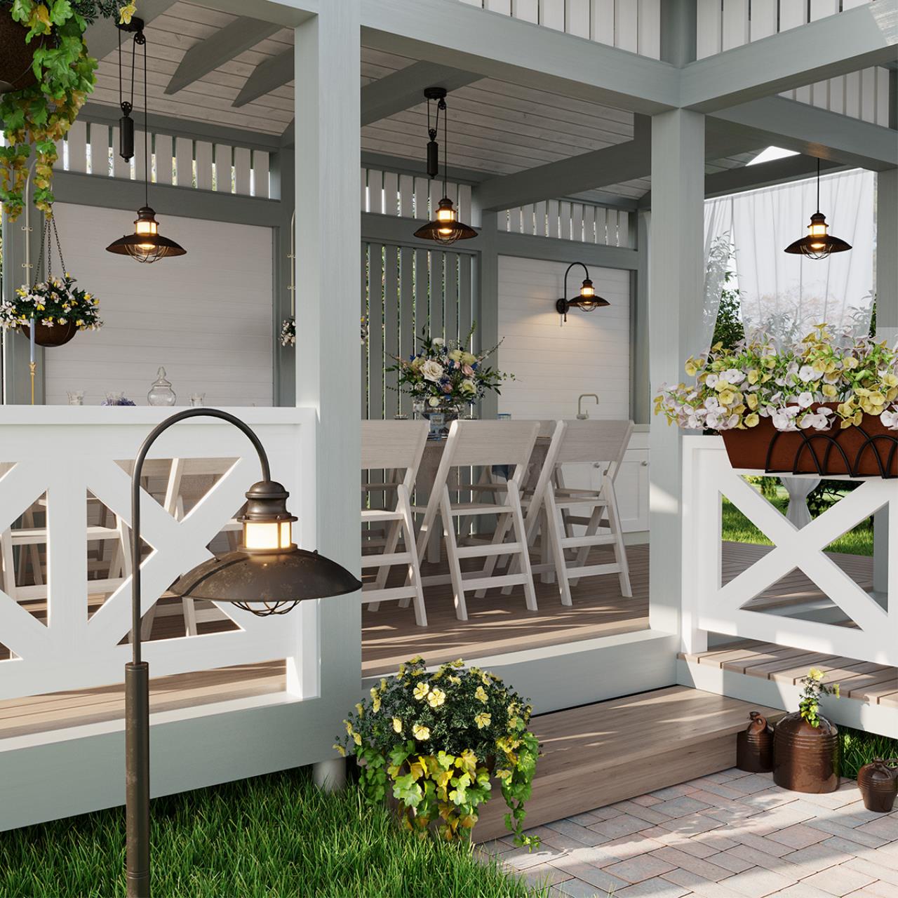 Линия Dante выполнена в классическом стиле. Основание светильника изготовлено из металла и окрашено в коричневый цвет с вкраплениями, имитирующими застарелую ржавчину. Плафон состоит из круглого металлического козырька и стеклянного рассеивателя, снаружи защищенного декоративной металлической решеткой. Форма светильника, напоминающая старинный корабельный фонарь, пользуется популярностью и по сей день. Светильники идеально подойдут для организации освещения придомовой территории в классическом стиле.