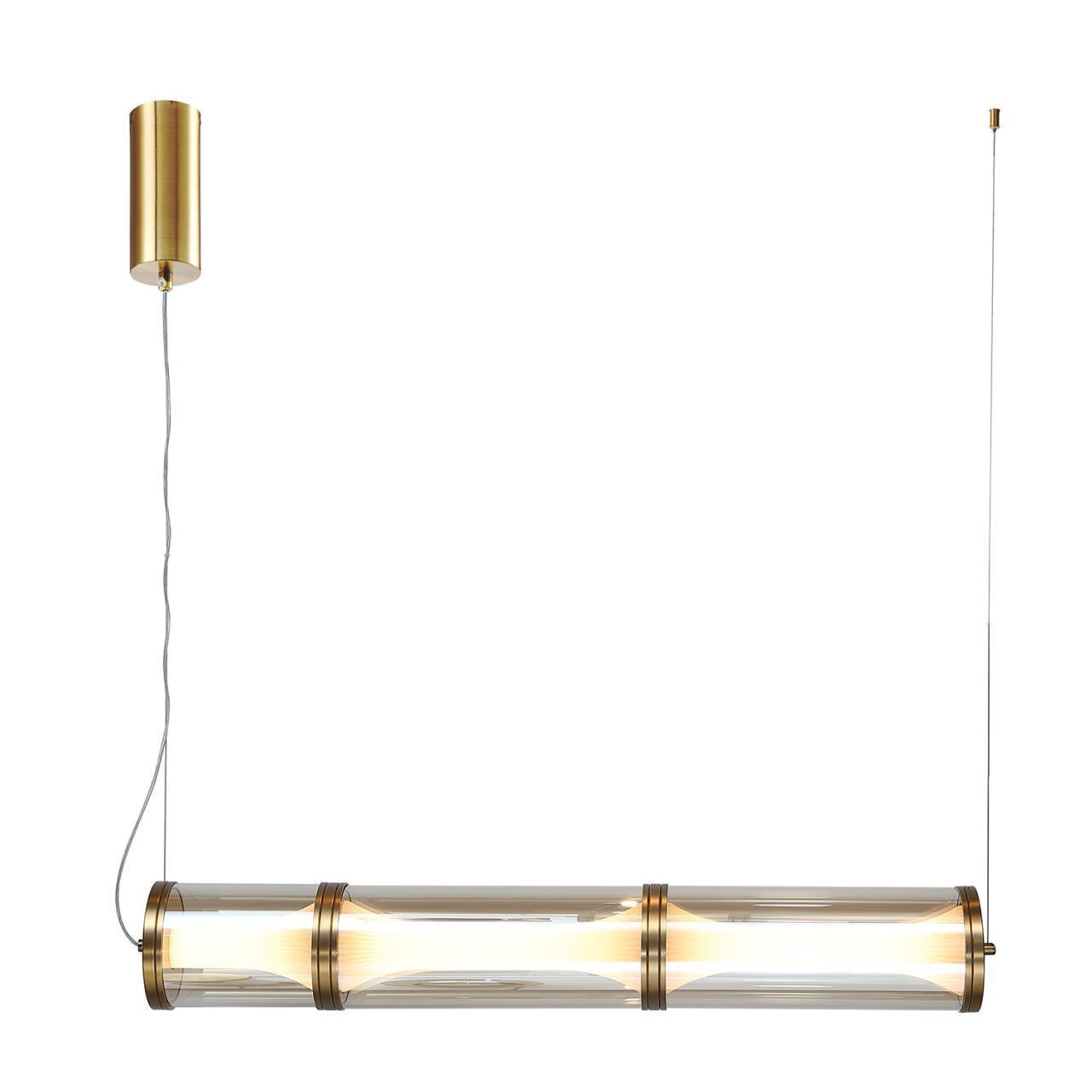 Подвес с каркасом в янтарном цвете, плафон из трех стеклянных сегментов в белом цвете, LEDлента, в комплекте крепления для монтажа в горизонтальном виде, регулируемая высота.