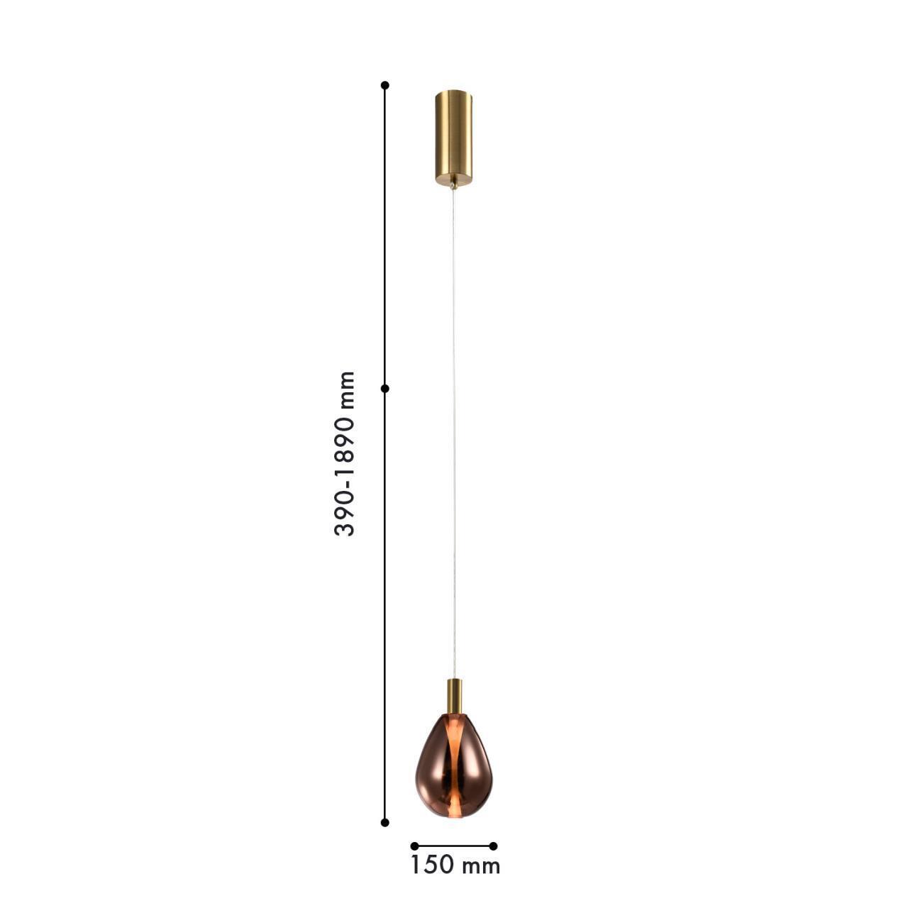 Подвес с каркасом в цвете латунь, с плафоном в медном цвете, регулируемая высота, COB.