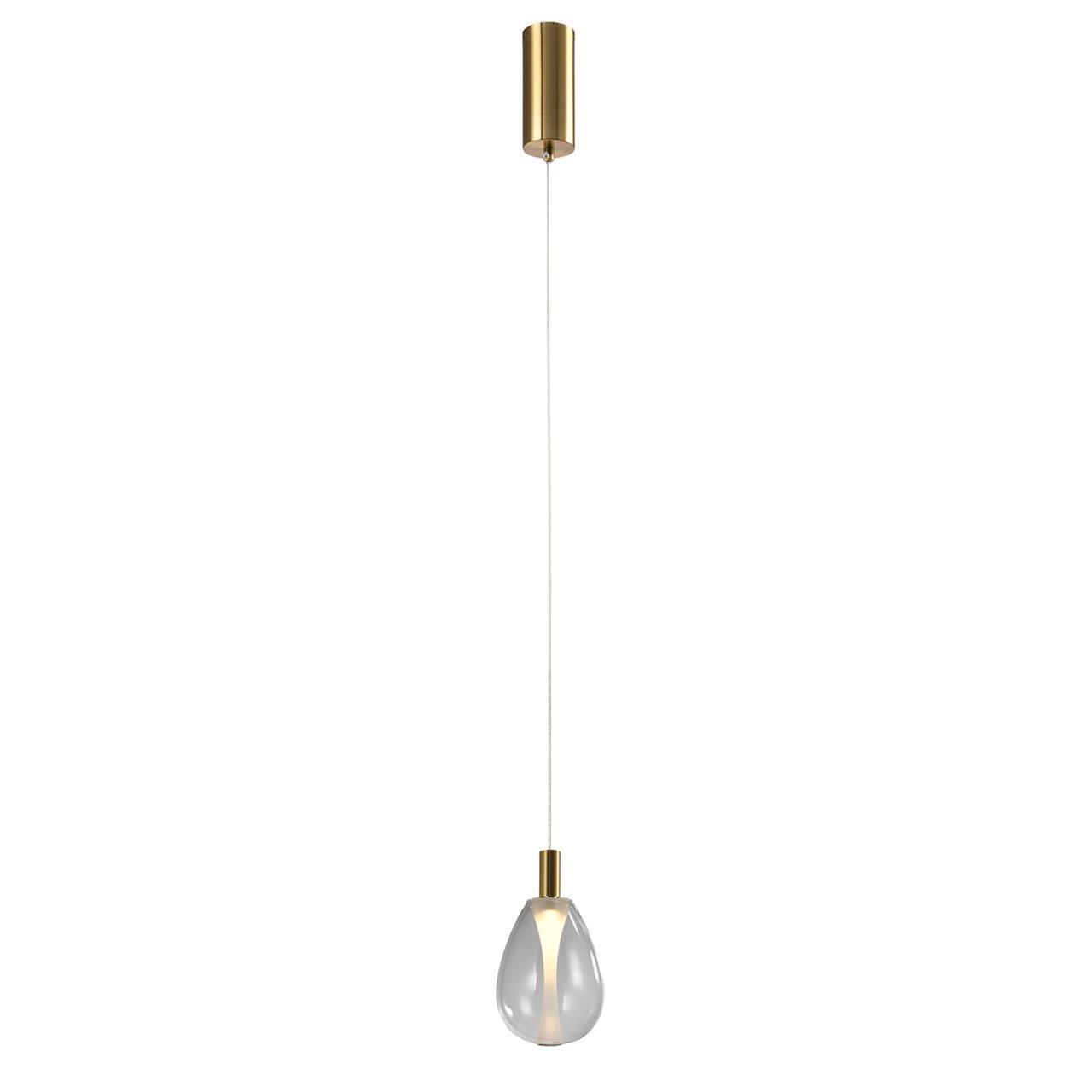Подвес с каркасом в цвете латунь, с плафоном в прозрачном цвете, регулируемая высота, COB.
