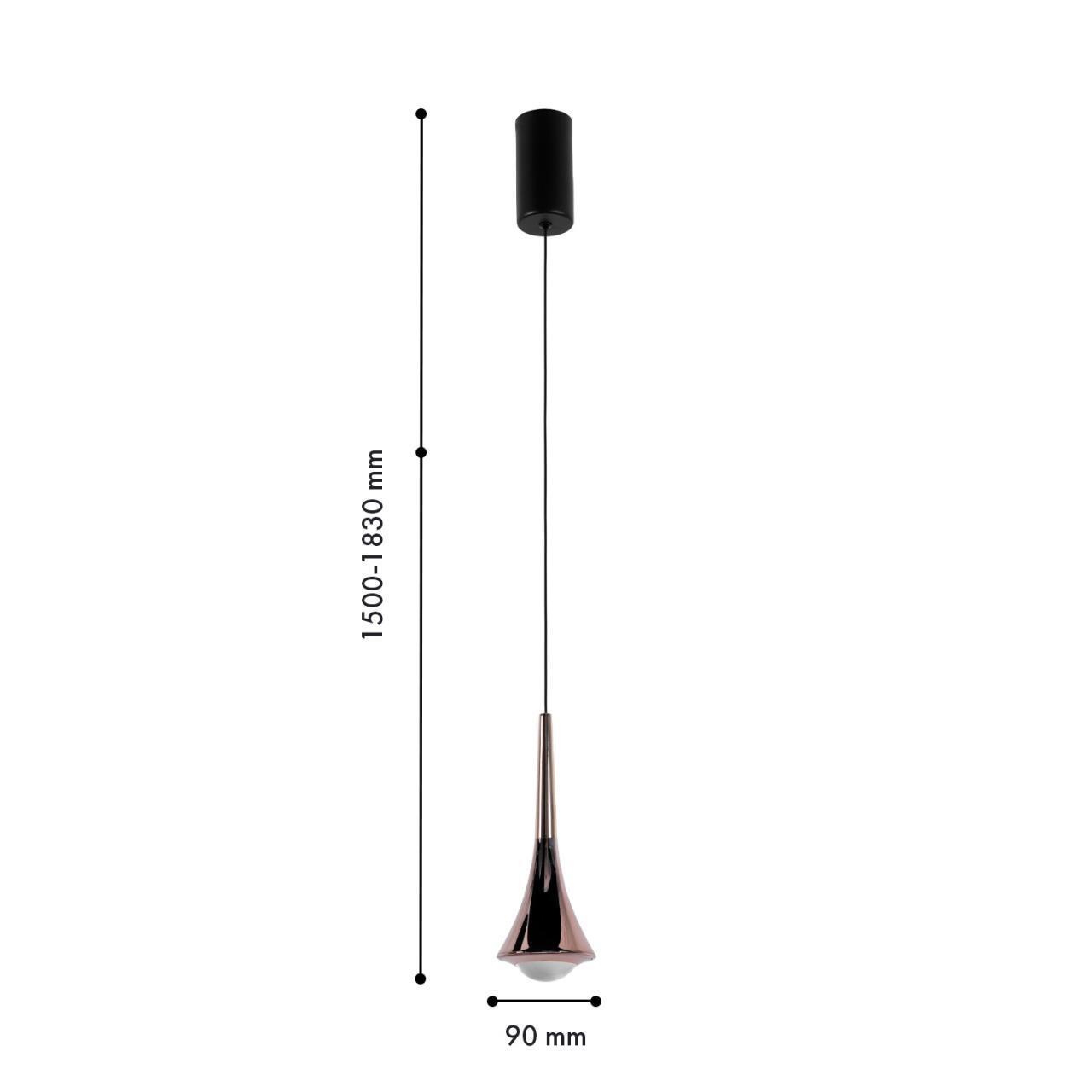 Металлический каркас в черном цвете, плафон состоит из двух деталей, покрытых классическим и розовым золотом, встроенный LEDмодуль, регулируемая высота.