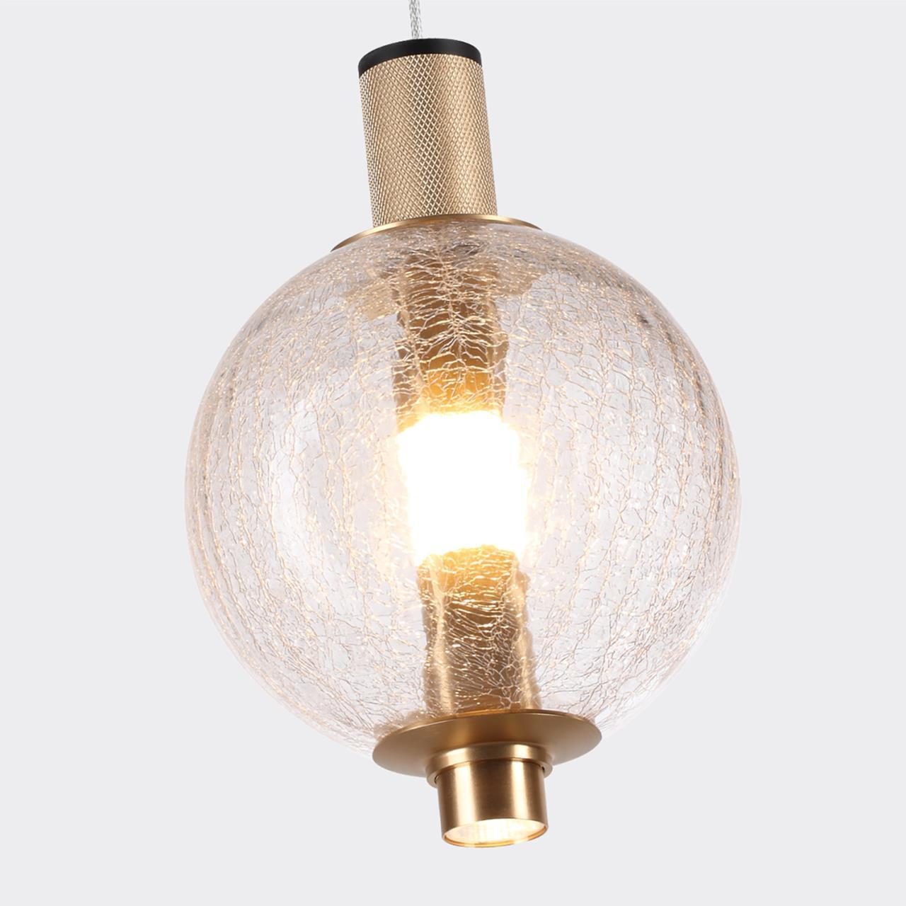 Подвес с выдувным плафоном кракле, два источника света, регулируемая высота, каркас в цвете латунь с элементами в черном цвете.