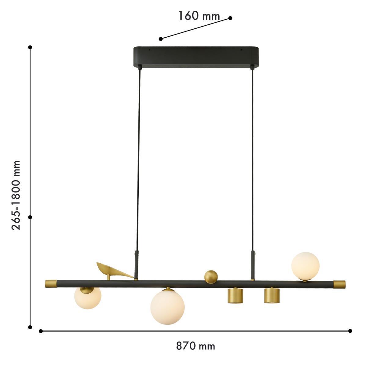 4324-5P, подвесная люстра, L870xW160xH265/1800, 2xLEDx6W + 3xLEDx5W, 2160LM, 4000K, included