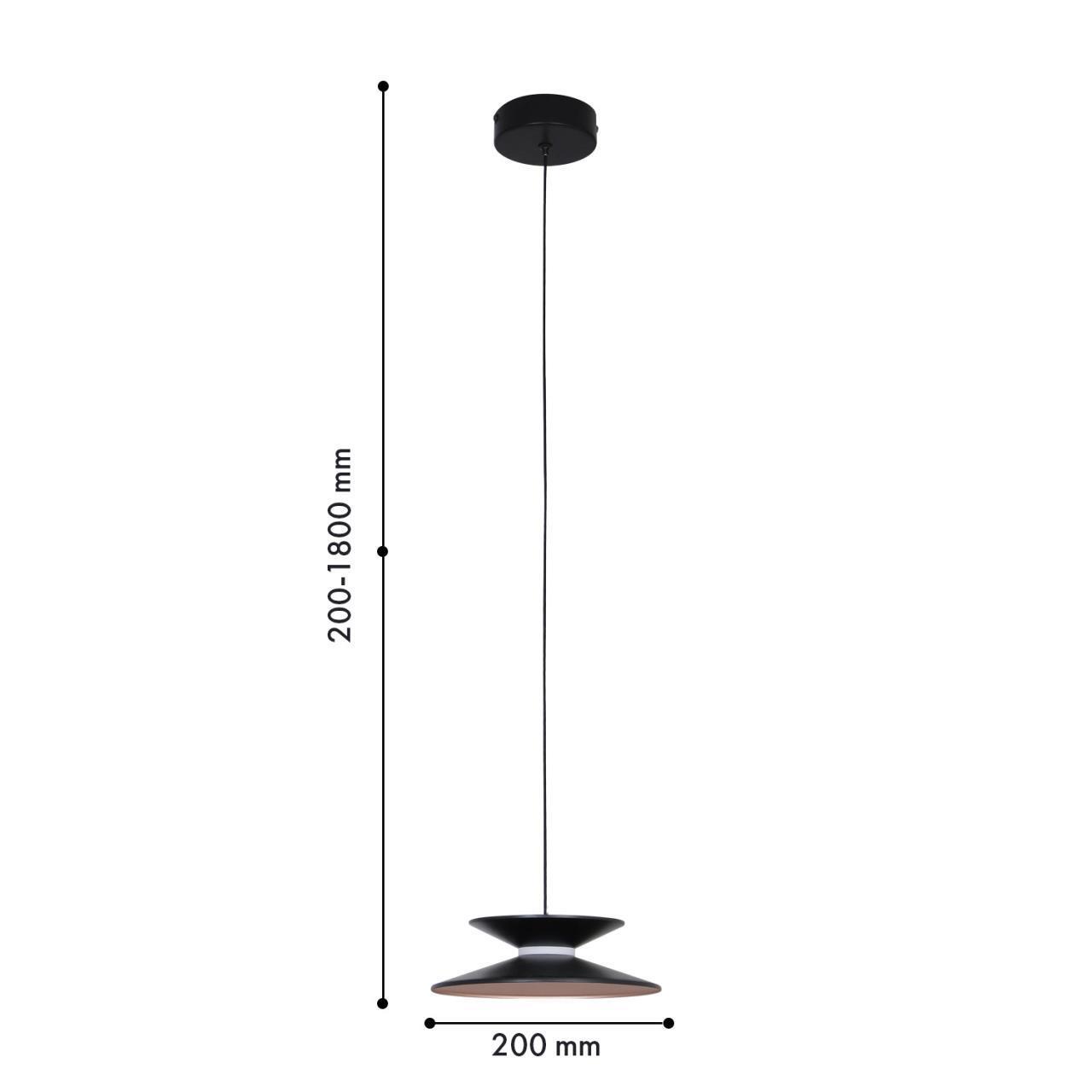 Подвес с соединенным между собой конусам, подсвеченным светодиодным модулем. Черный матовый корпус, регулируемая высота.