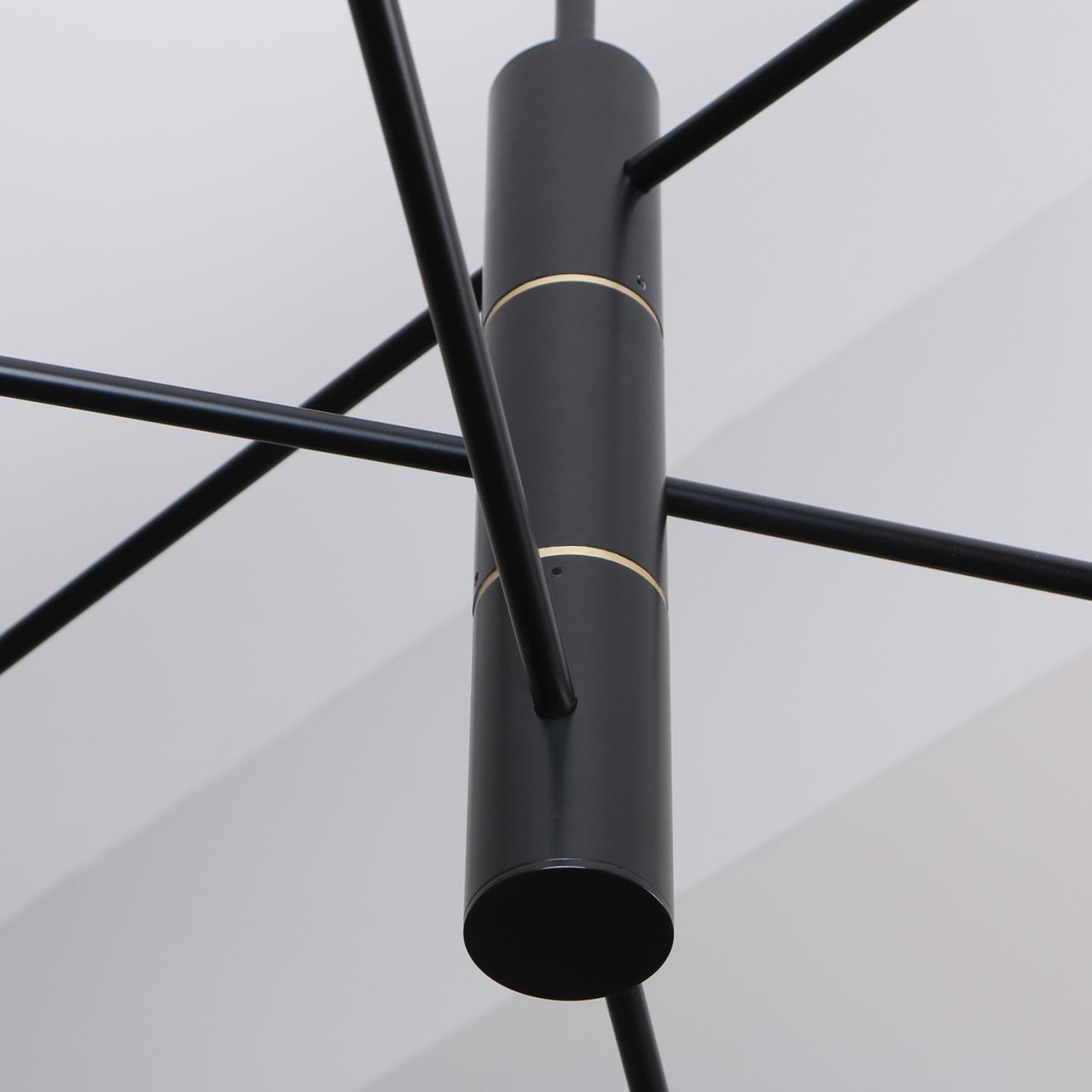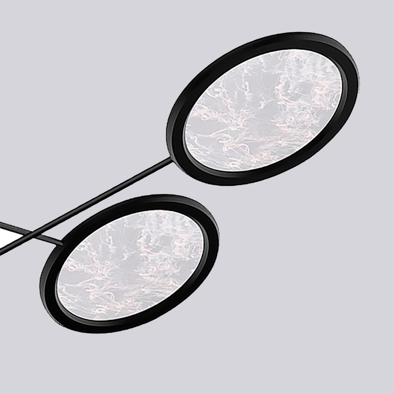 Металлический каркас черного матового цвета с плафонами из акрила и эффектом дыма, лента LED расположена по внутреннему периметру плафона.