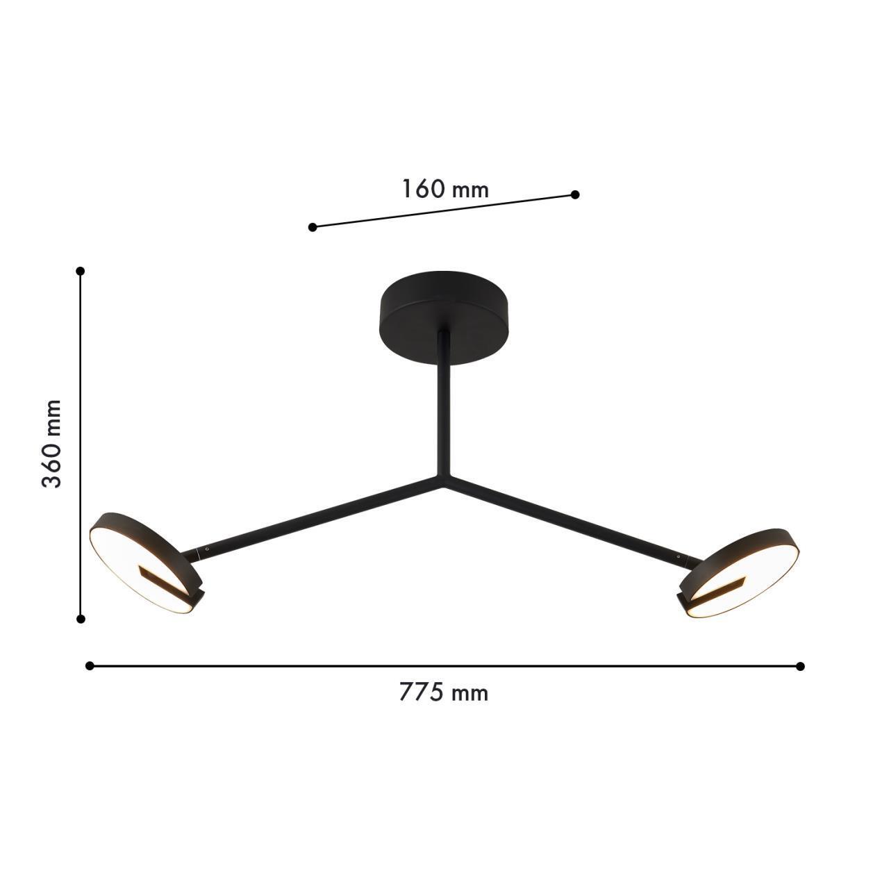 Металлический каркас черного матового цвета, плафоны из белого акрила с металлической окантовкой, специальная декоративная щель в плафонах и встроенный поворотный механизм позволяют поворачивать их под углом 90°.