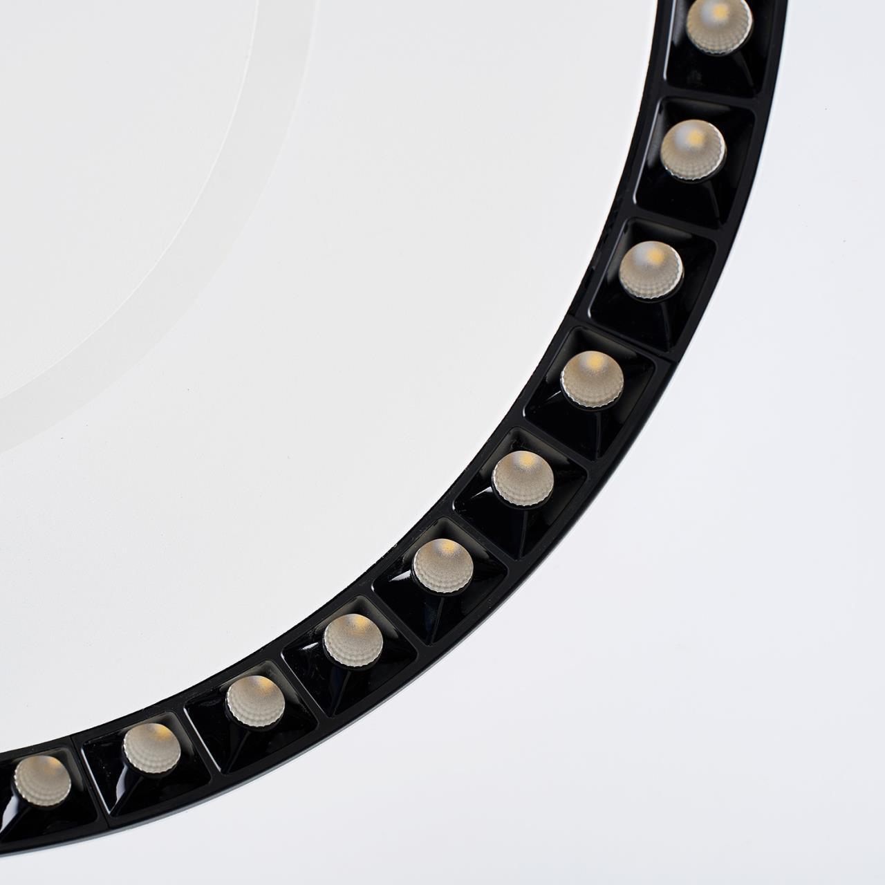 Металлический плафон белого цвета, два типа светодиодной подсветки лента LED и светодиоды гнездового типа, рассеиватель из прозрачного акрила белого цвета.