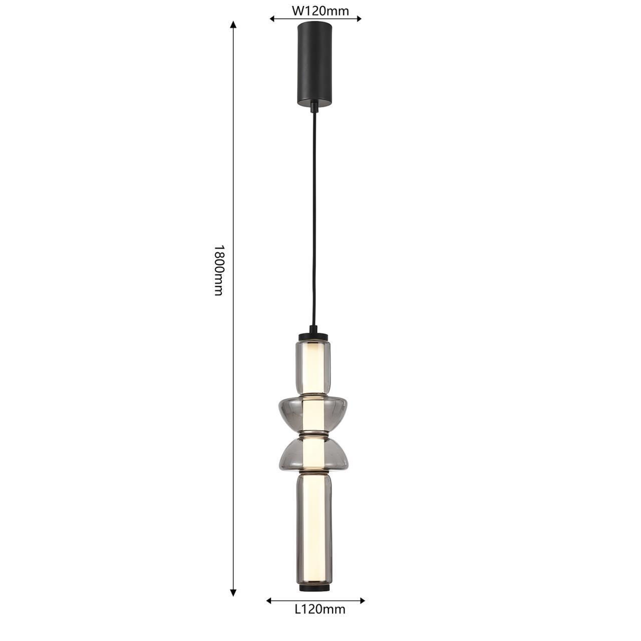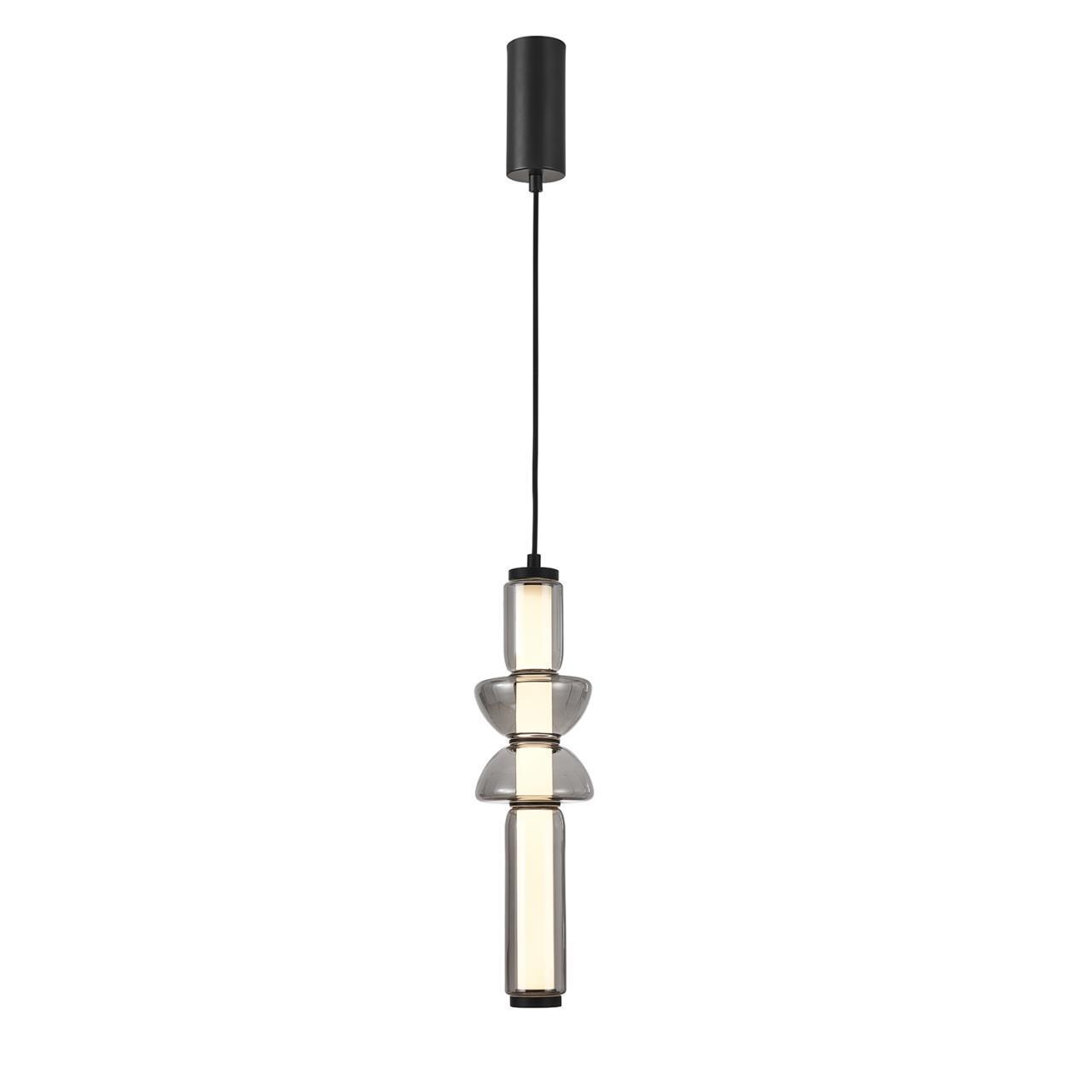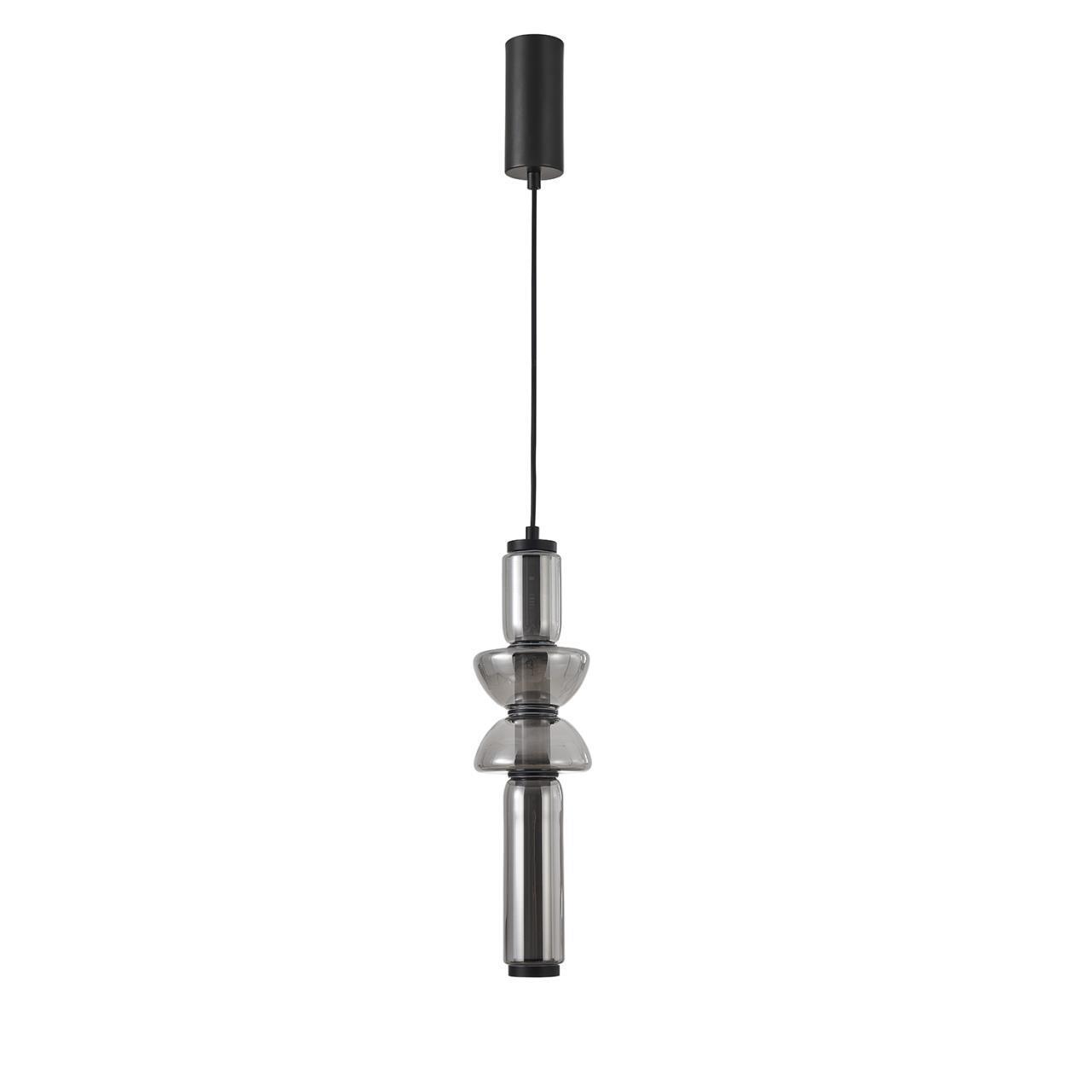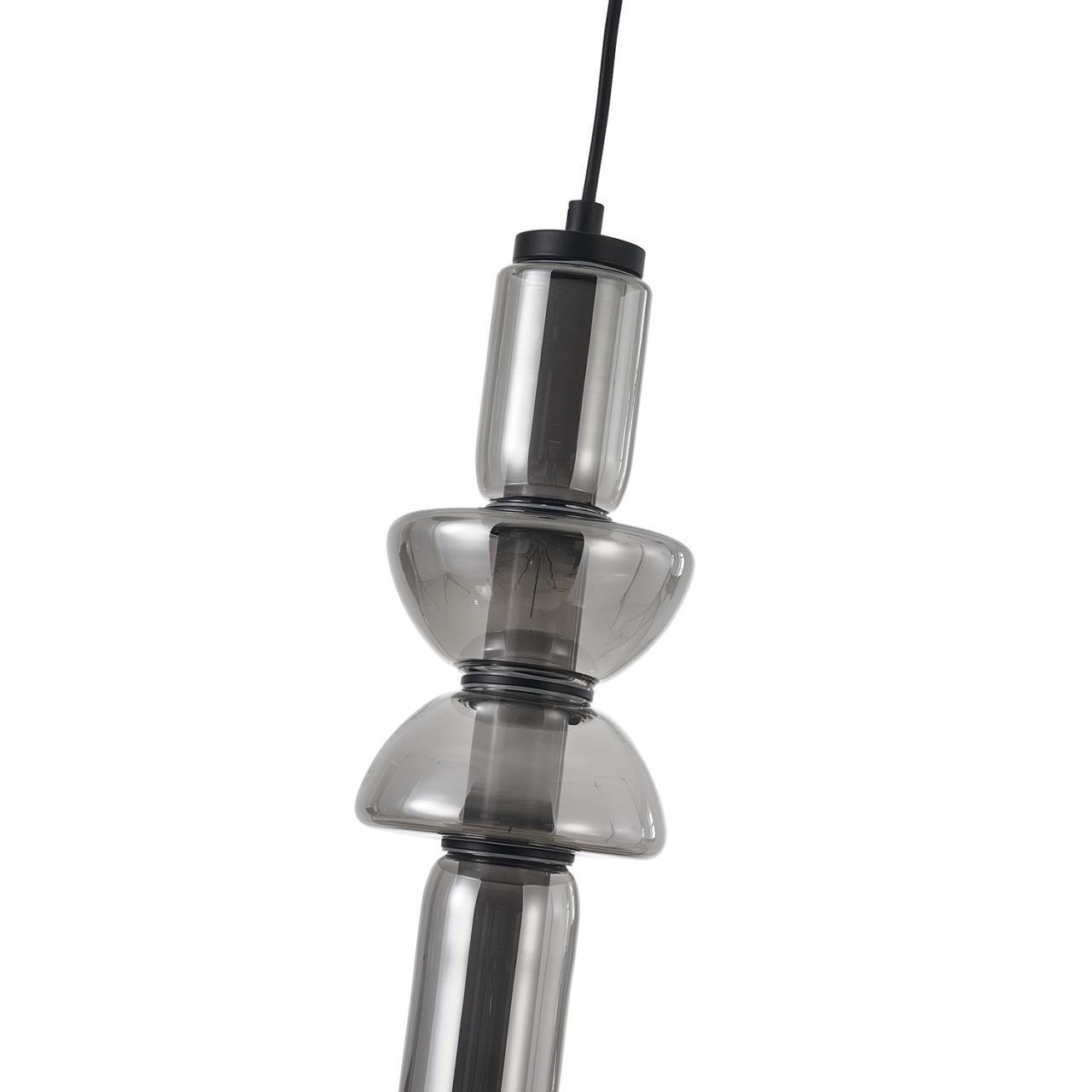 Металлический каркас черного цвета, дымчатосерый плафон изготовлен из выдувного стекла по муранской технологии, встроенная акриловая трубка с LEDлентой, регулируемая высота.