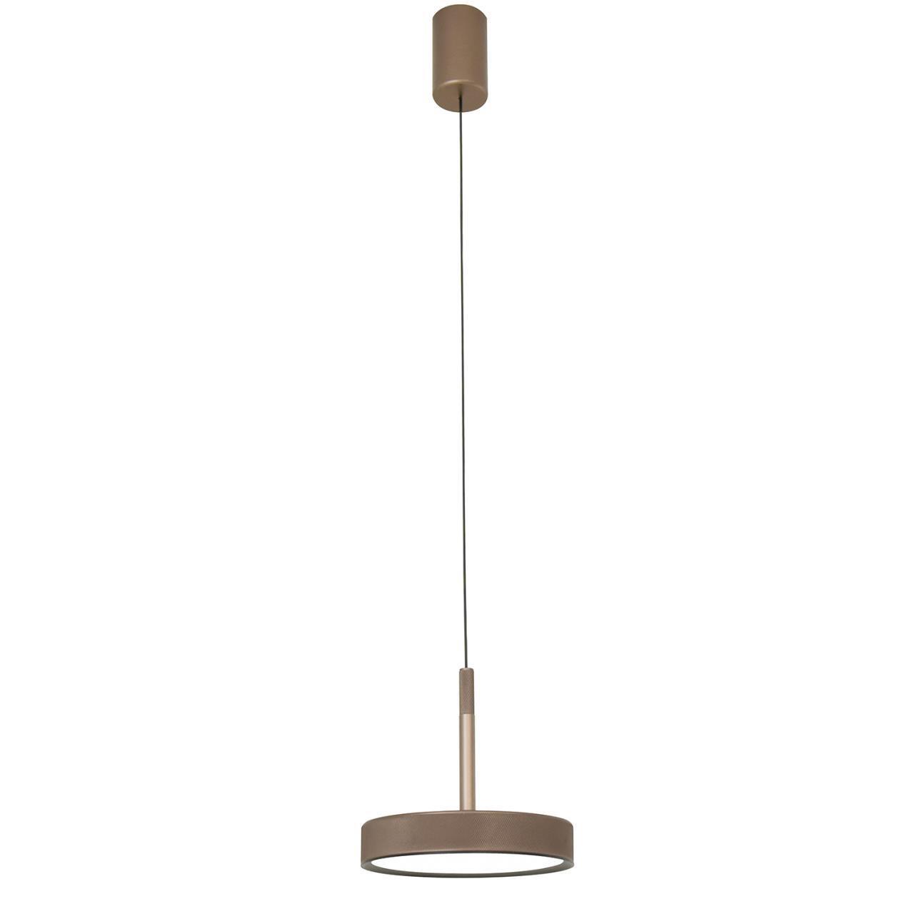 Каркас из металла кофейного цвета, плафон в виде диска с рифленой боковой поверхностью, рассеиватель из пластика, встроенный LEDмодуль, декоративный элемент в цвете матовое золото.