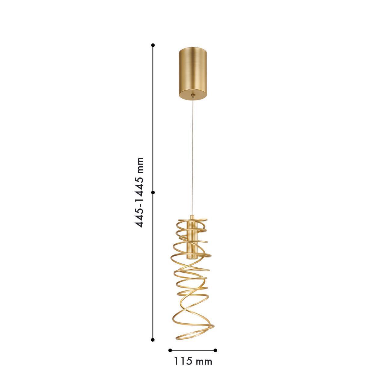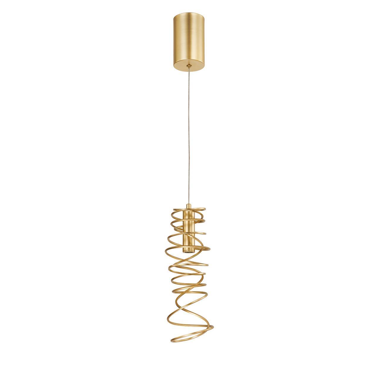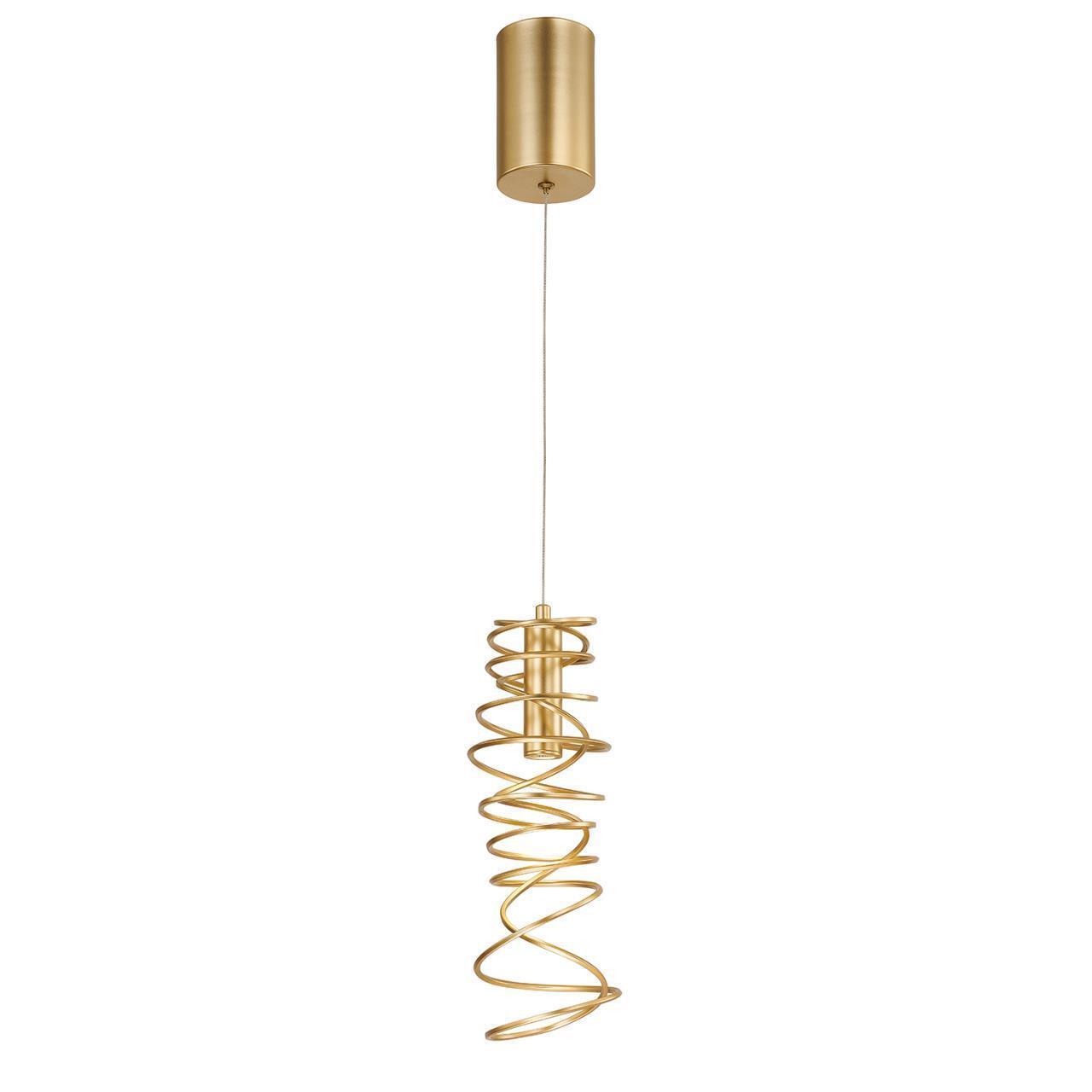 Металлический каркас золотого цвета, плафон из металла в форме хаотично намотанной проволоки. Встроенный LEDмодуль направлен вниз.