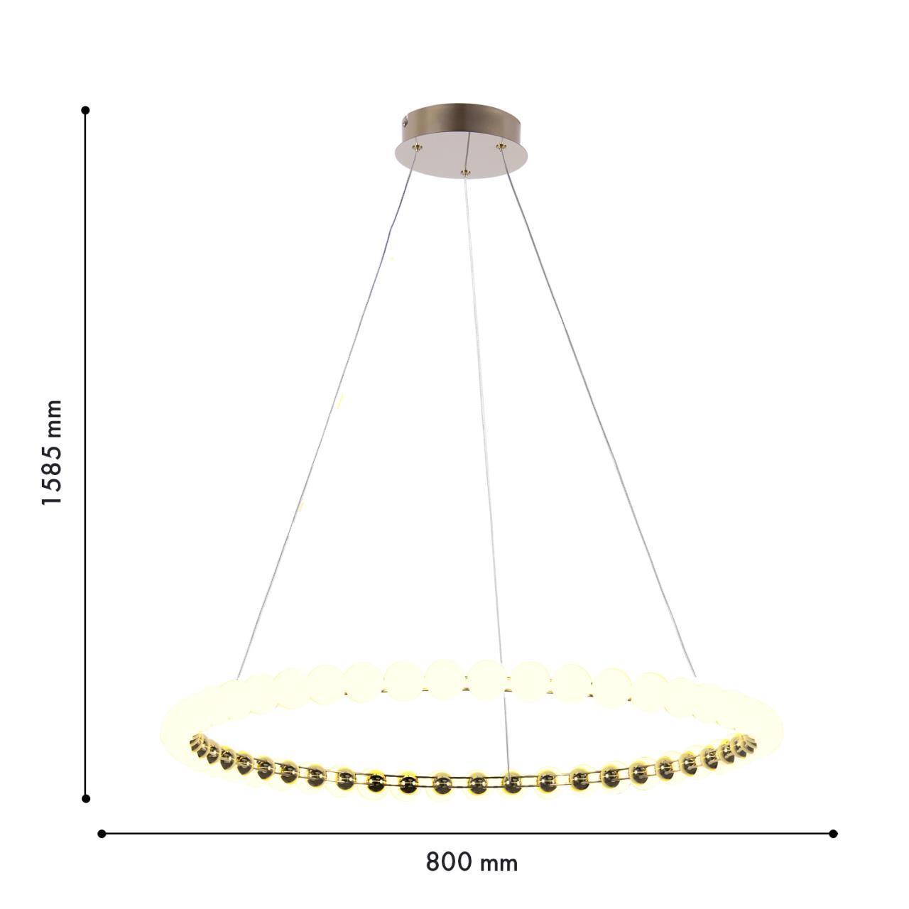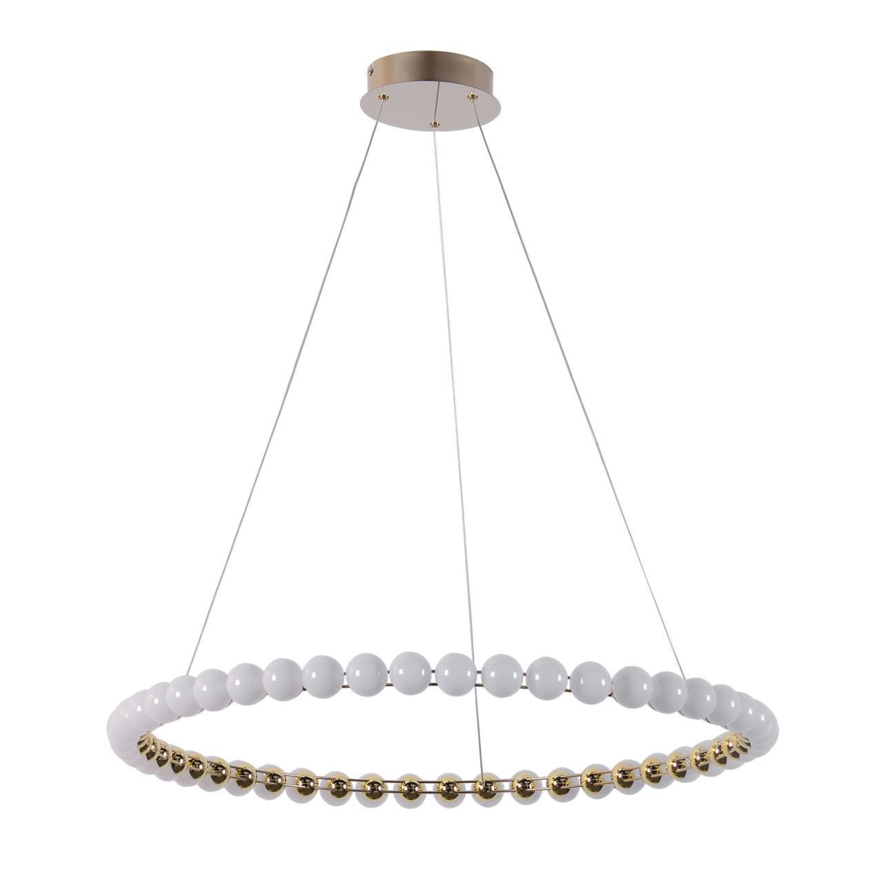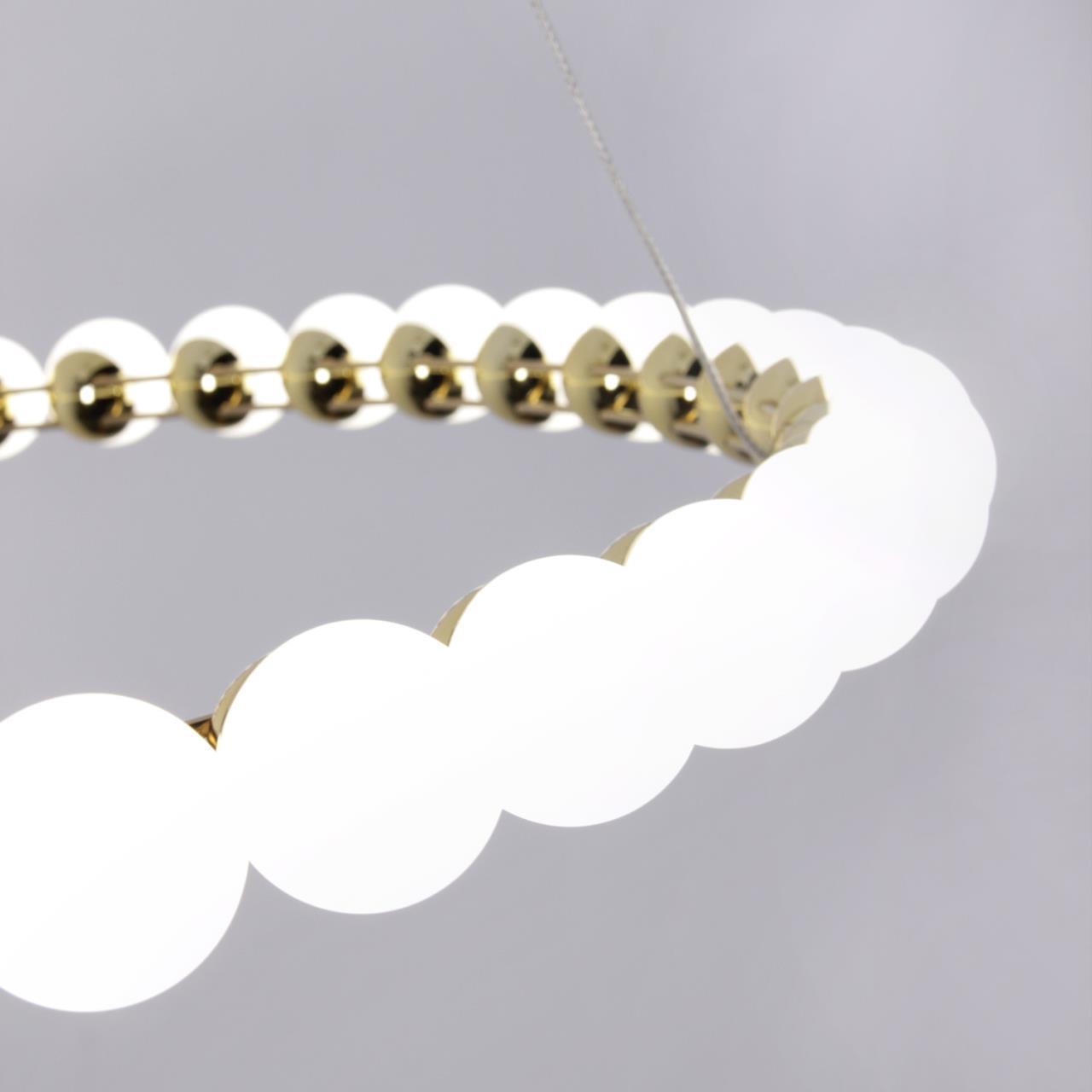 Металлический каркас в цвете латунь, плафоны в форме белых акриловых шариков.