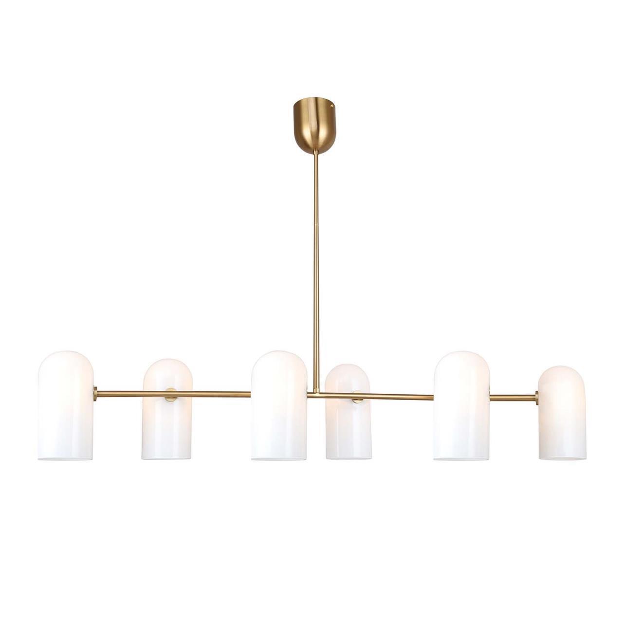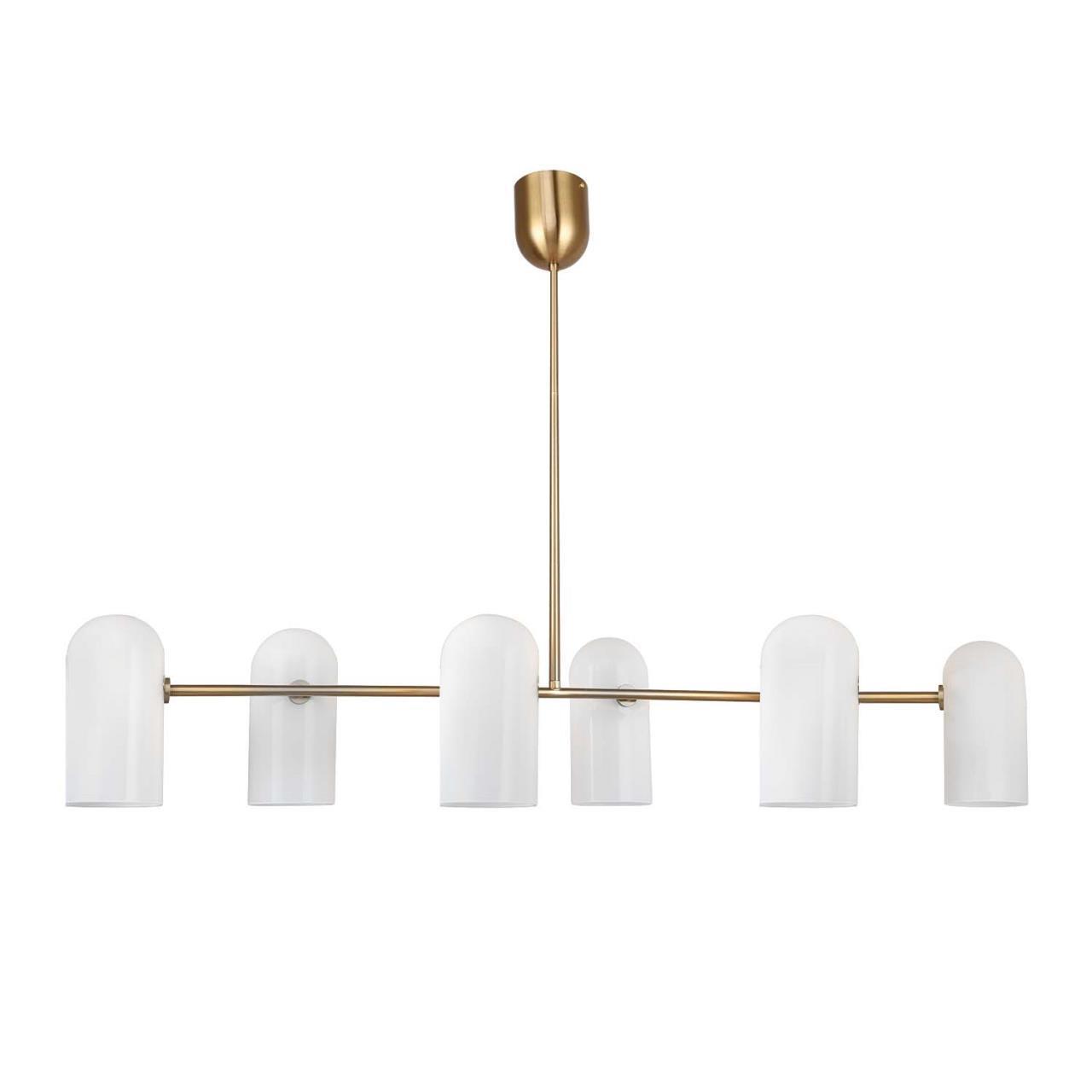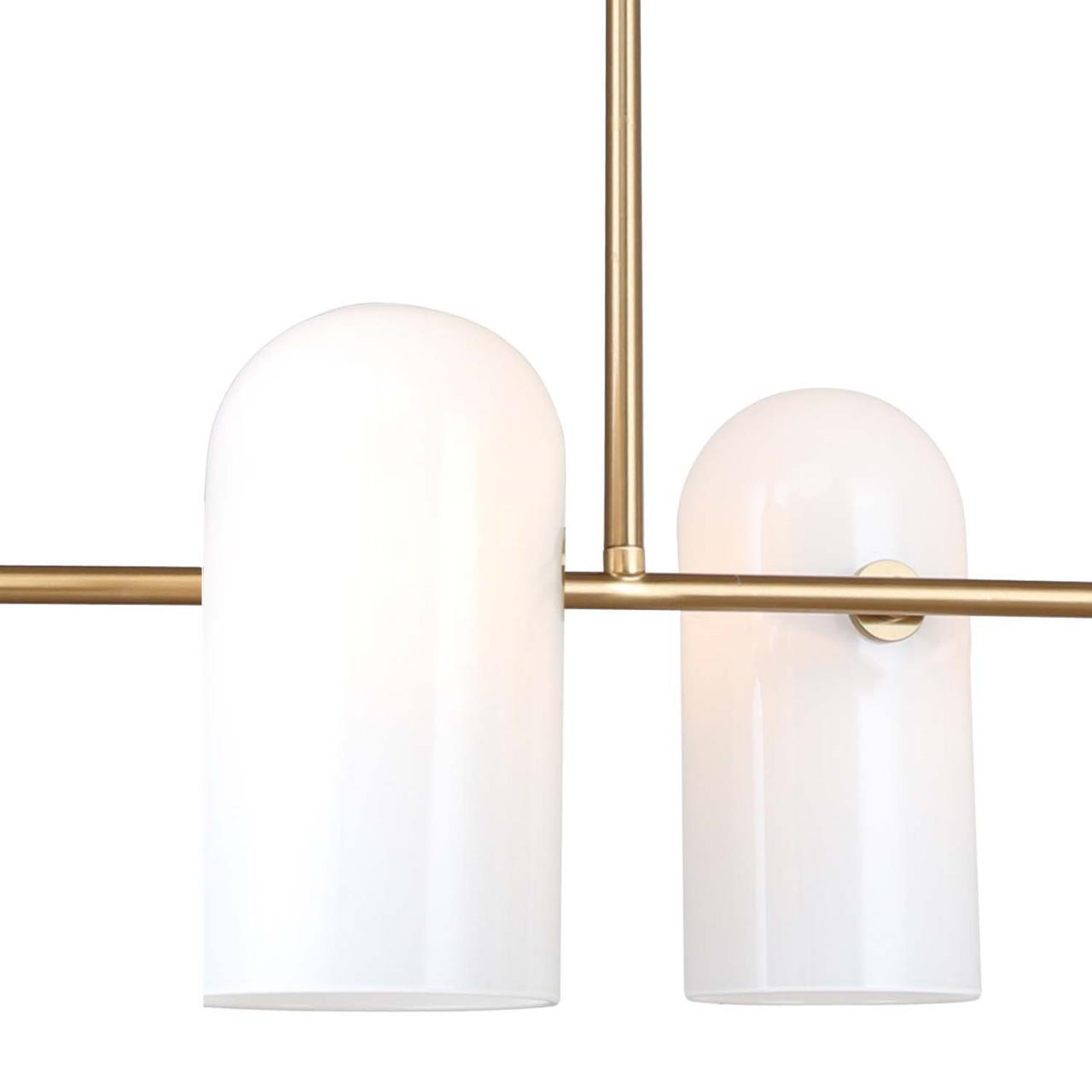 Каркас из металла цвета латунь, плафоны из белого стекла, регулируемая высота, сменная лампа G9.