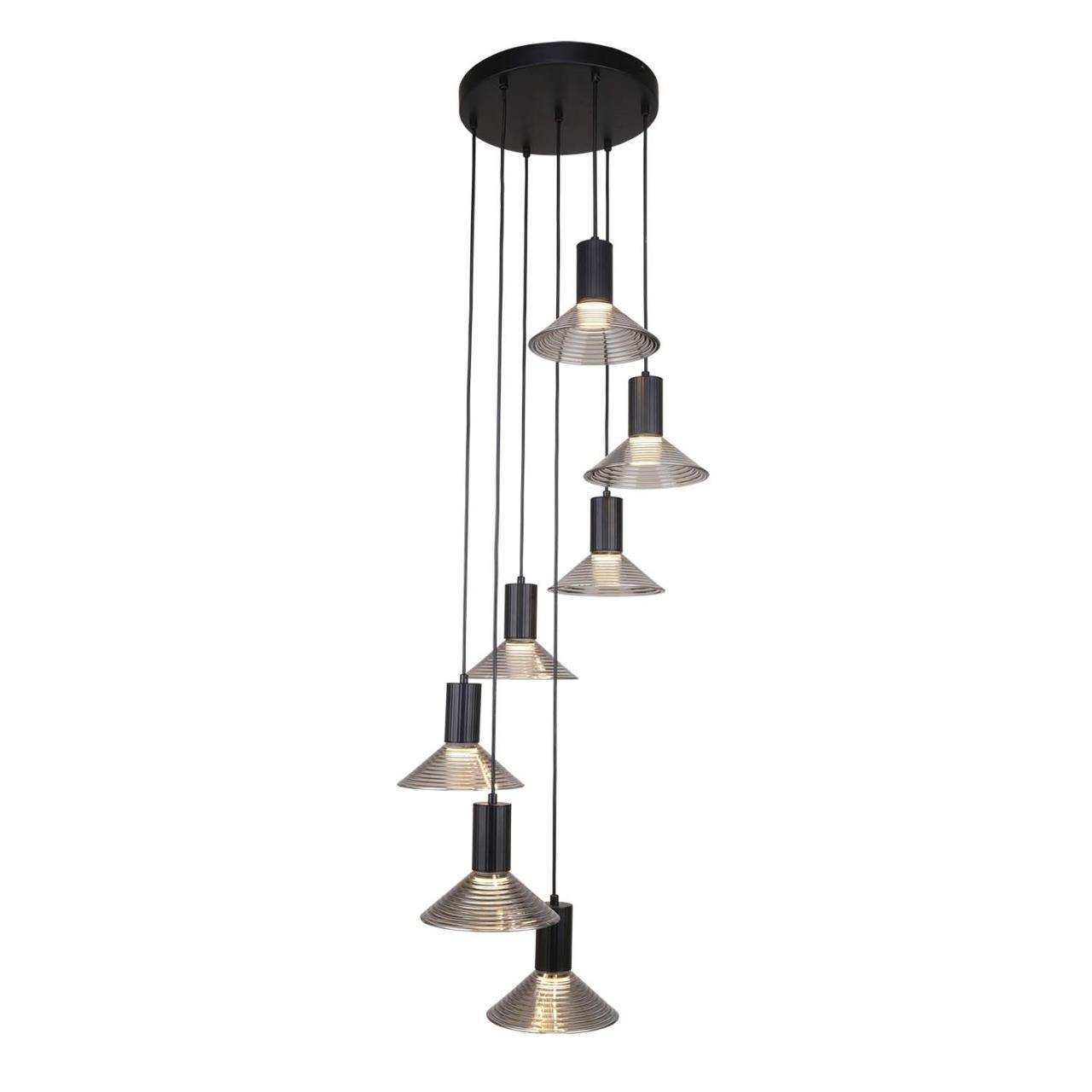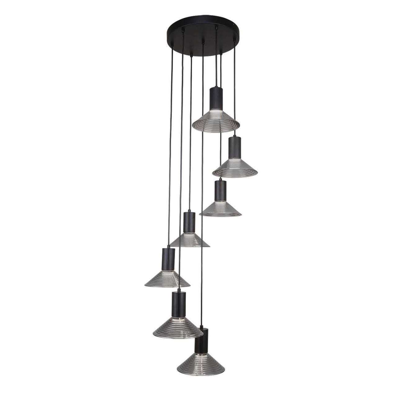 Каркас из металла черного матового цвета, плафоны из рифленого стекла, регулируемая высота, LEDмодуль.