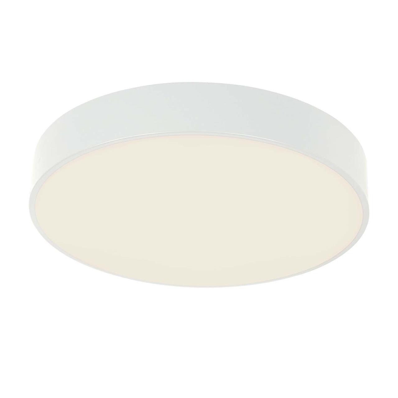 Каркас из металла белого цвета, белый плафон из непрозрачного акрила, LEDмодуль, регулируемая мощность и цветовая температура, пульт дистанционного управления в комплекте.