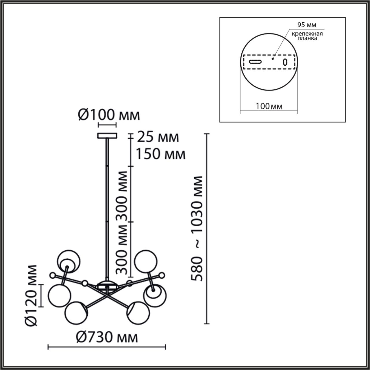 6581/6 MODERNI LN25 108 черный, золотой/белый металл /стекло Люстра потолочная E14 6*40W 220V MELODY