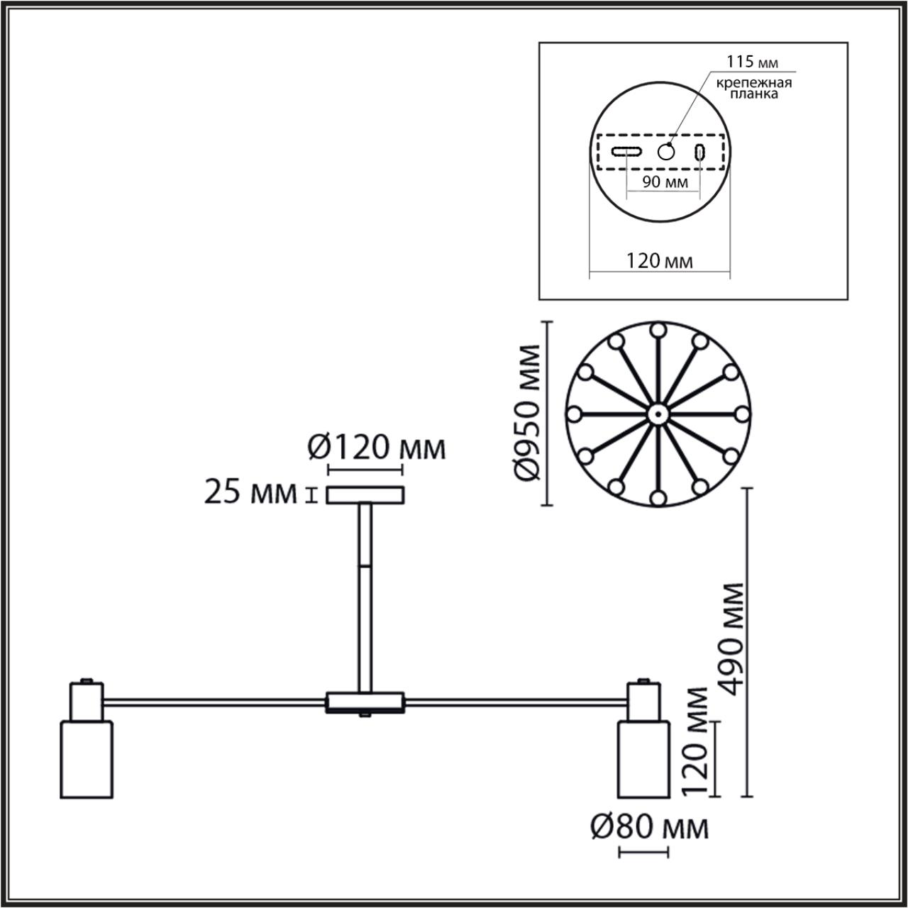 Общая мощность светильника, W