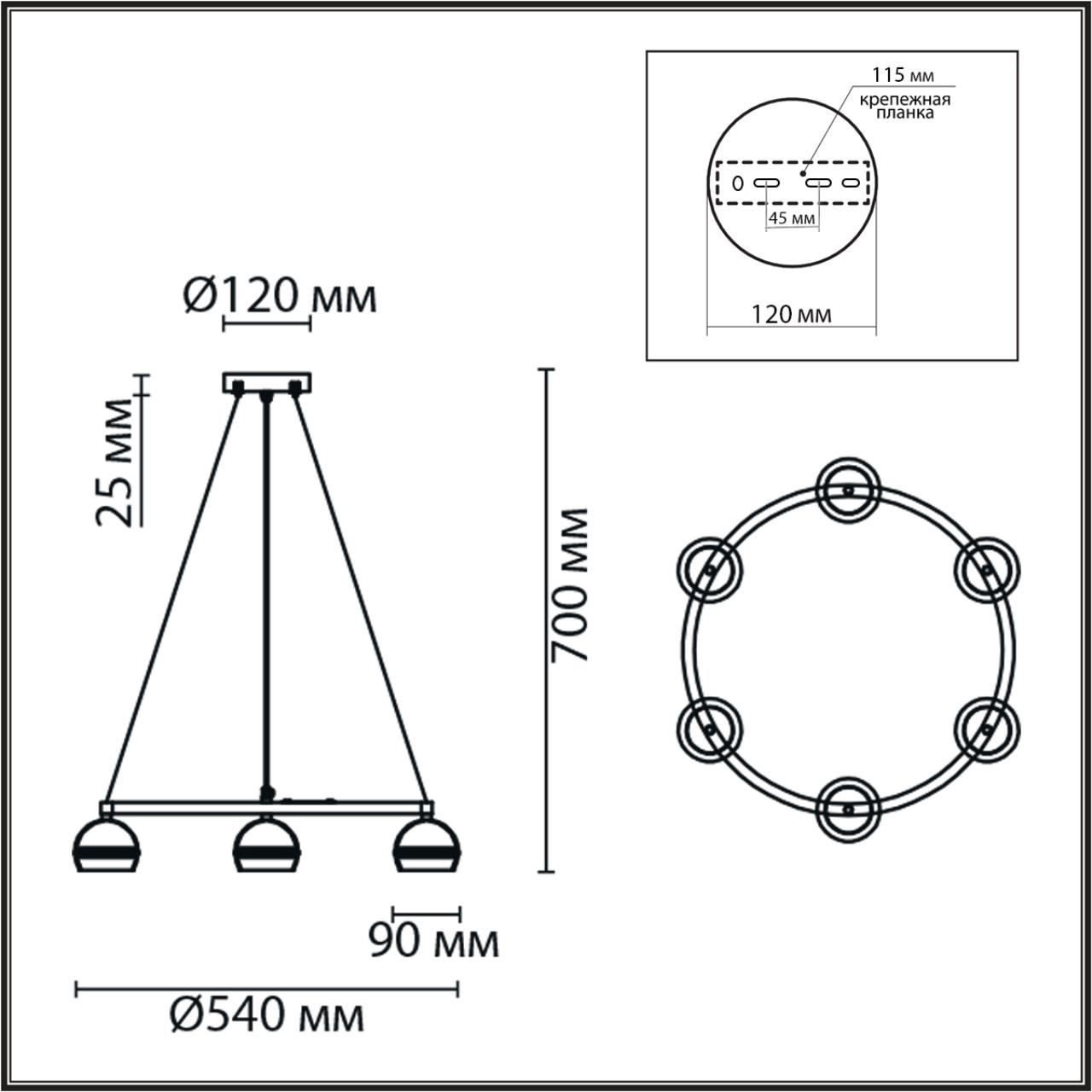 8242/6 COMFI LN25 203 черный металл Светильник подвесной LED GX53 6*7W 220V LUAZANA