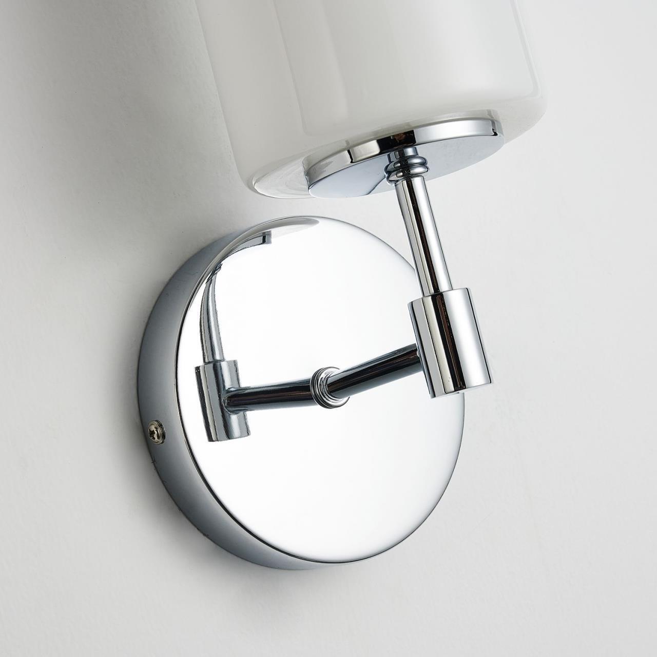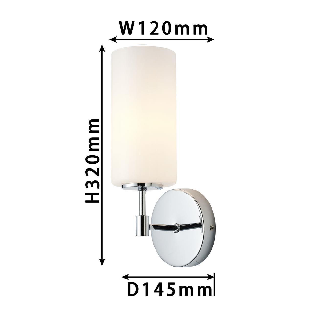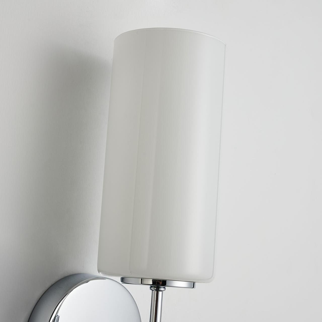 Металлический хромированный каркас, плафон из белого матового стекла, сменная лампа, цоколь Е14.