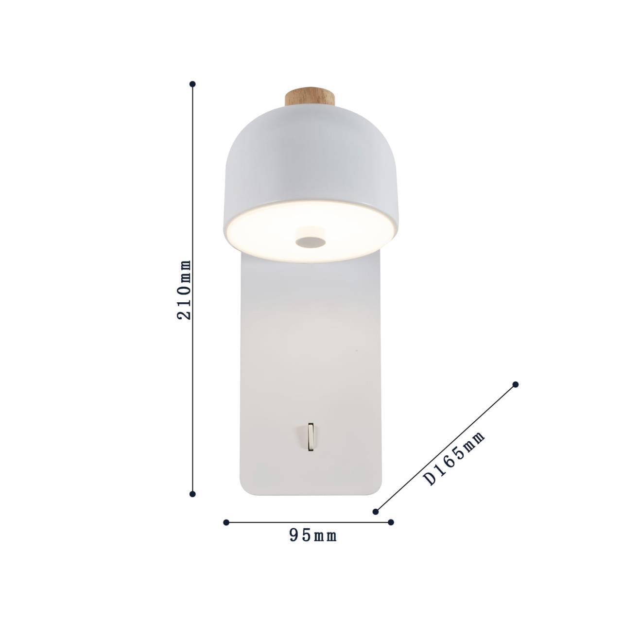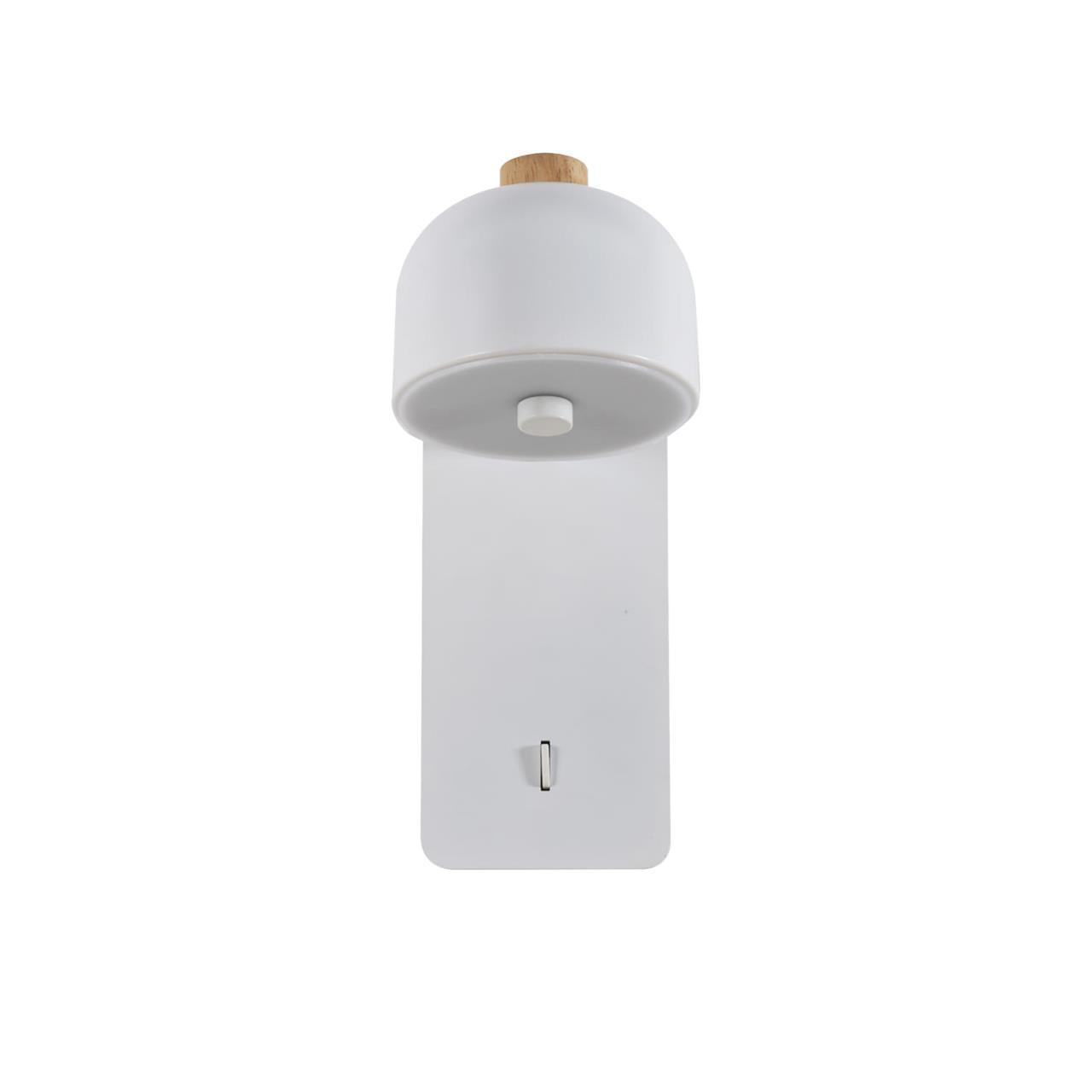 Металлический каркас белого цвета, поворотный плафон, декорирован деревянным элементом, акриловый матовый рассеиватель, выключатель на корпусе, LEDмодуль.