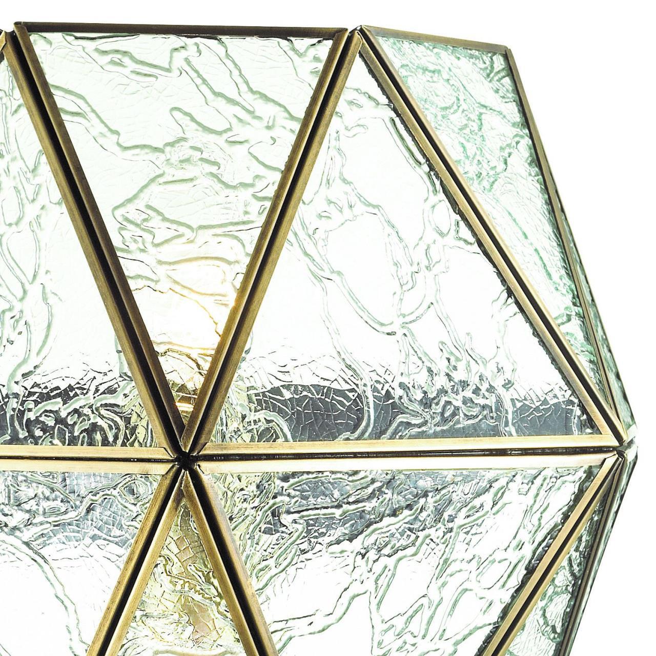 Металлический каркас цвета античной латуни, плафон из прозрачного стекла с эффектом льда.