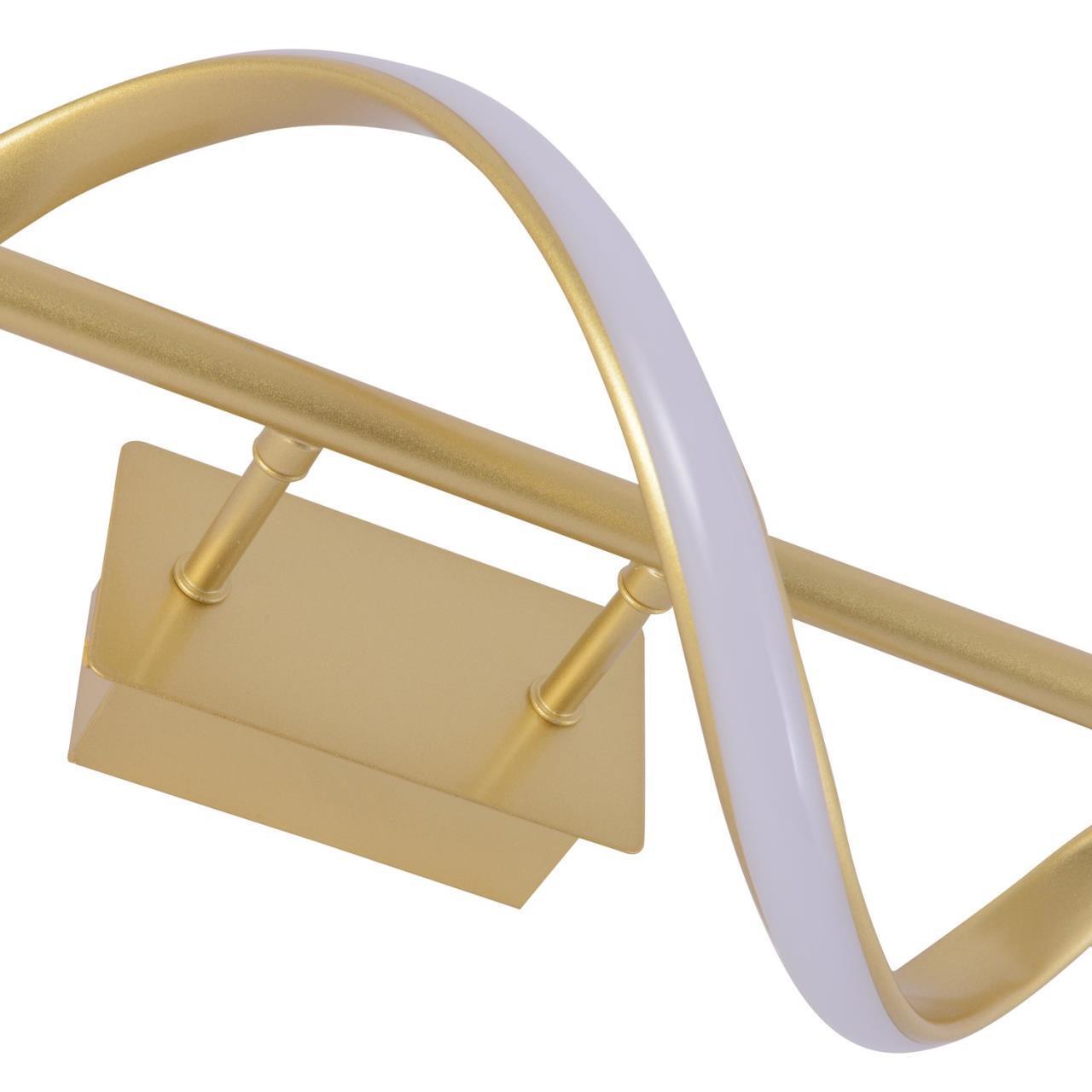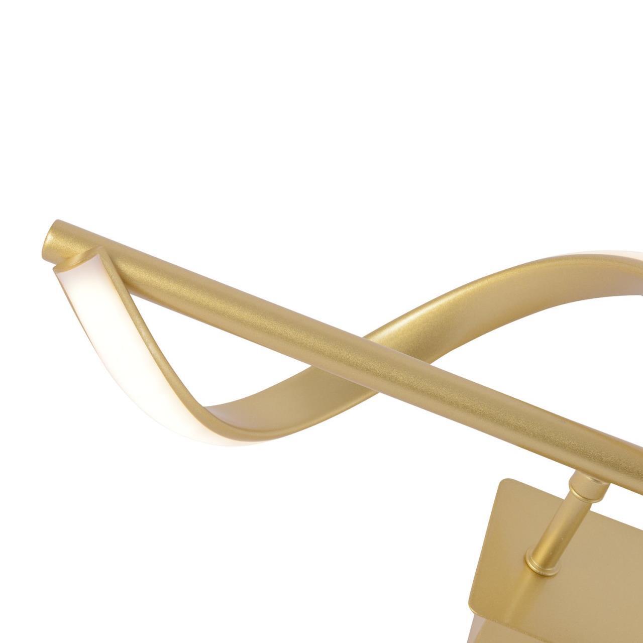 Каркас из металла матового золотого цвета, рассеиватель из белого, непрозрачного акрила, прикрепленный к декоративному элементу в виде волны, встроенная LEDлента.
