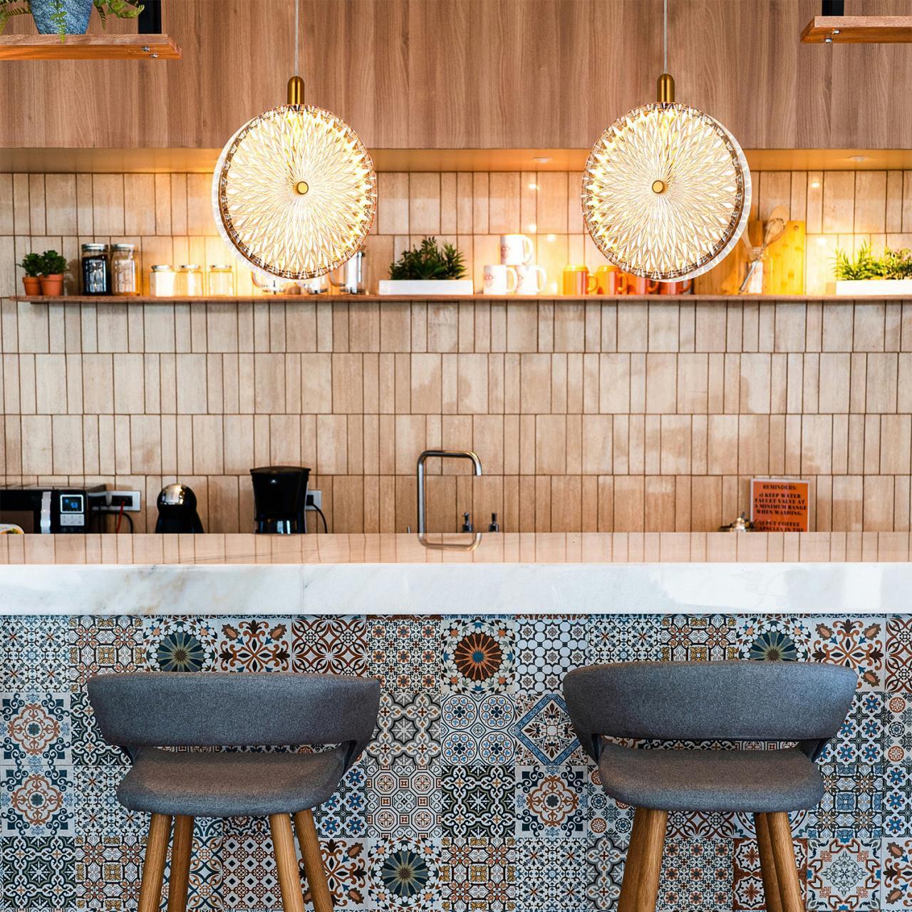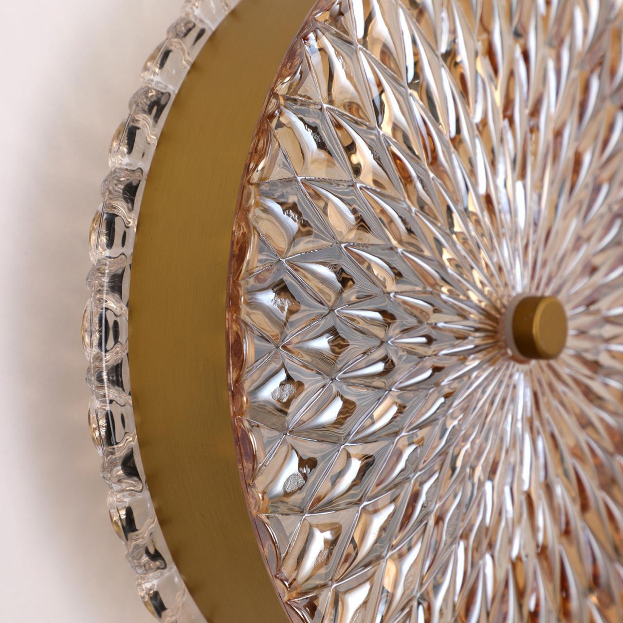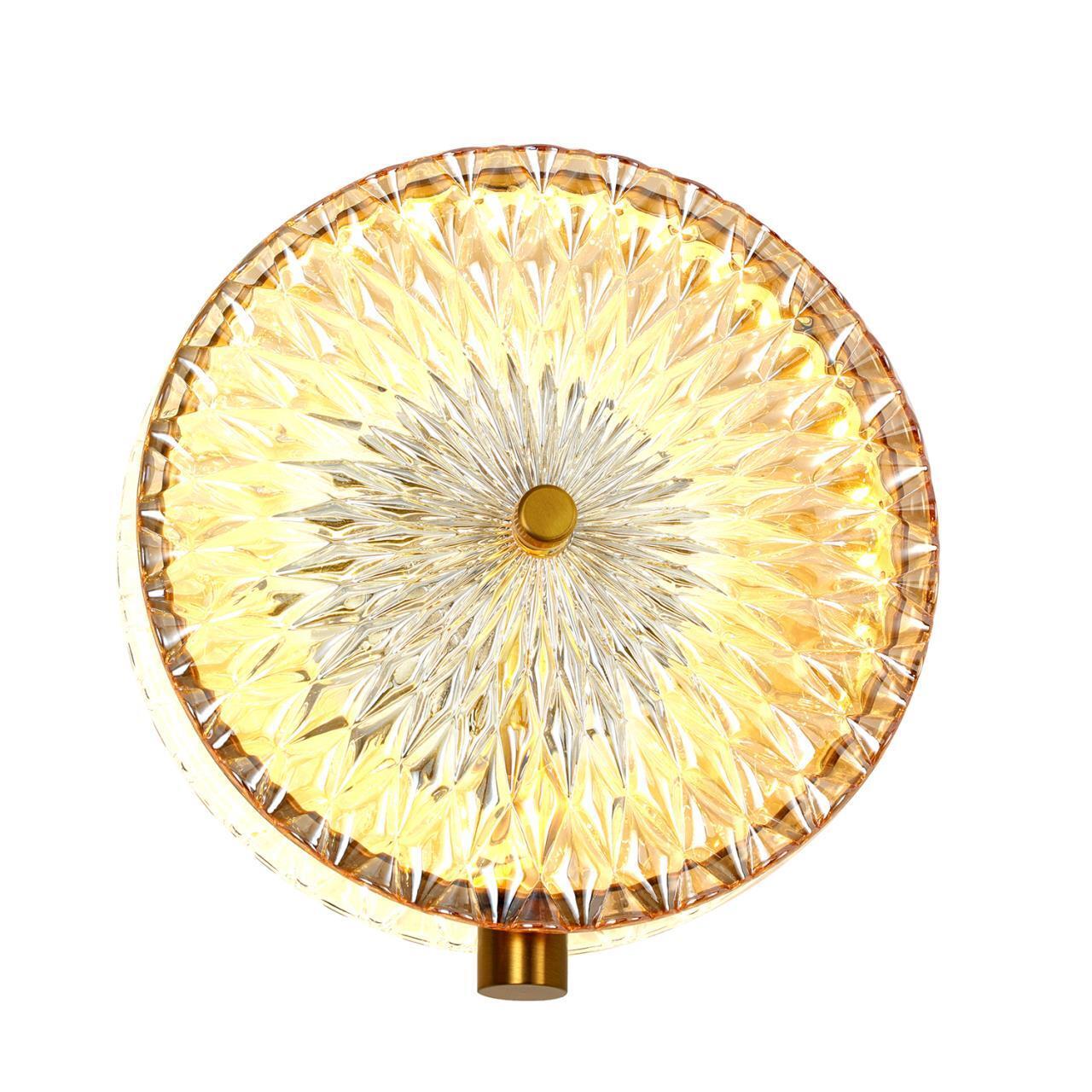 Каркас черного цвета, плафон состоит из двух узорных стеклянных дисков прозрачного и янтарного цвета, внутри которых расположен LEDмодуль, регулируемая высота.