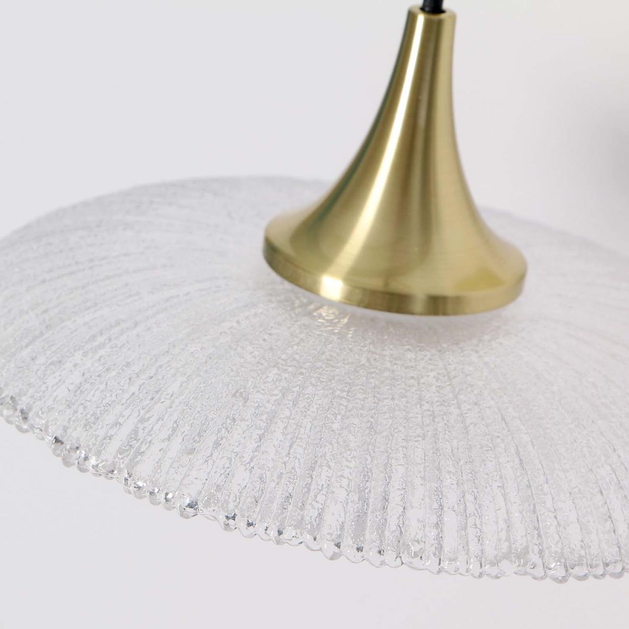 Металлический каркас золотого матового цвета с гальваническим покрытием, плафон из прозрачного стекла с волнистым эффектом, LEDмодуль.