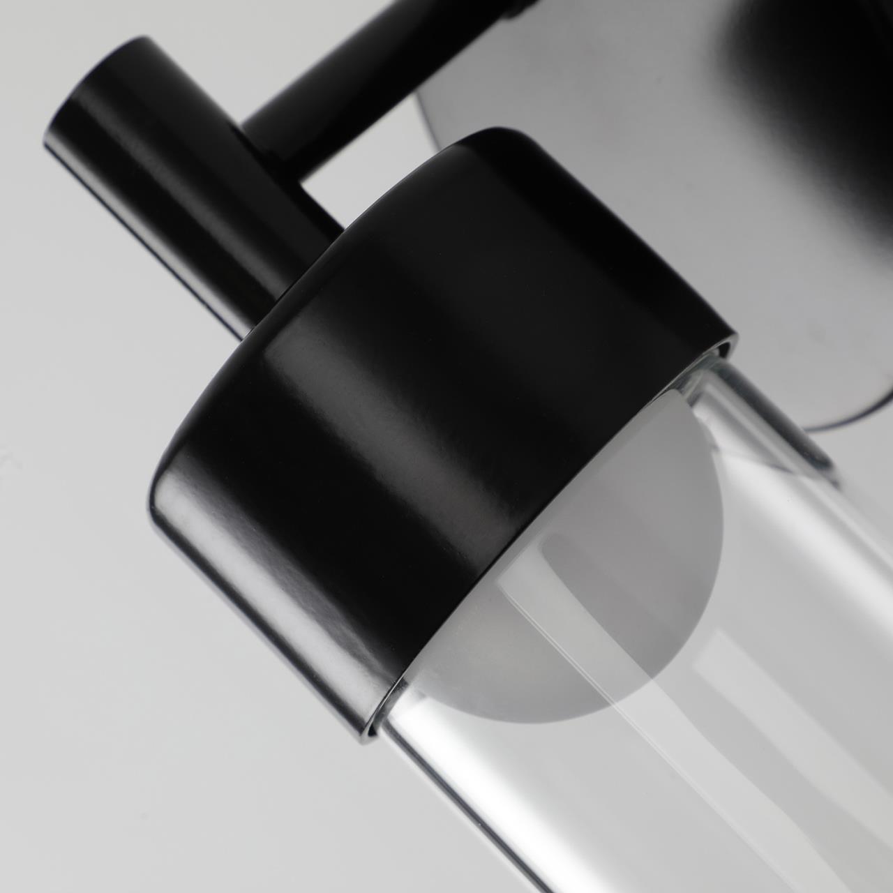 Металлический каркас черного цвета, плафон из прозрачного стекла, степень защиты от влаги IP54