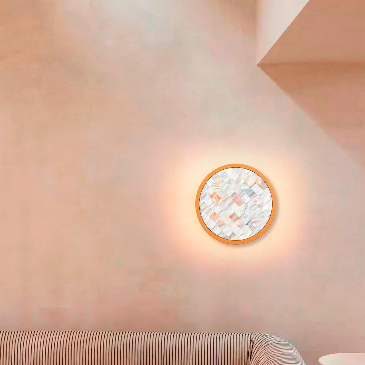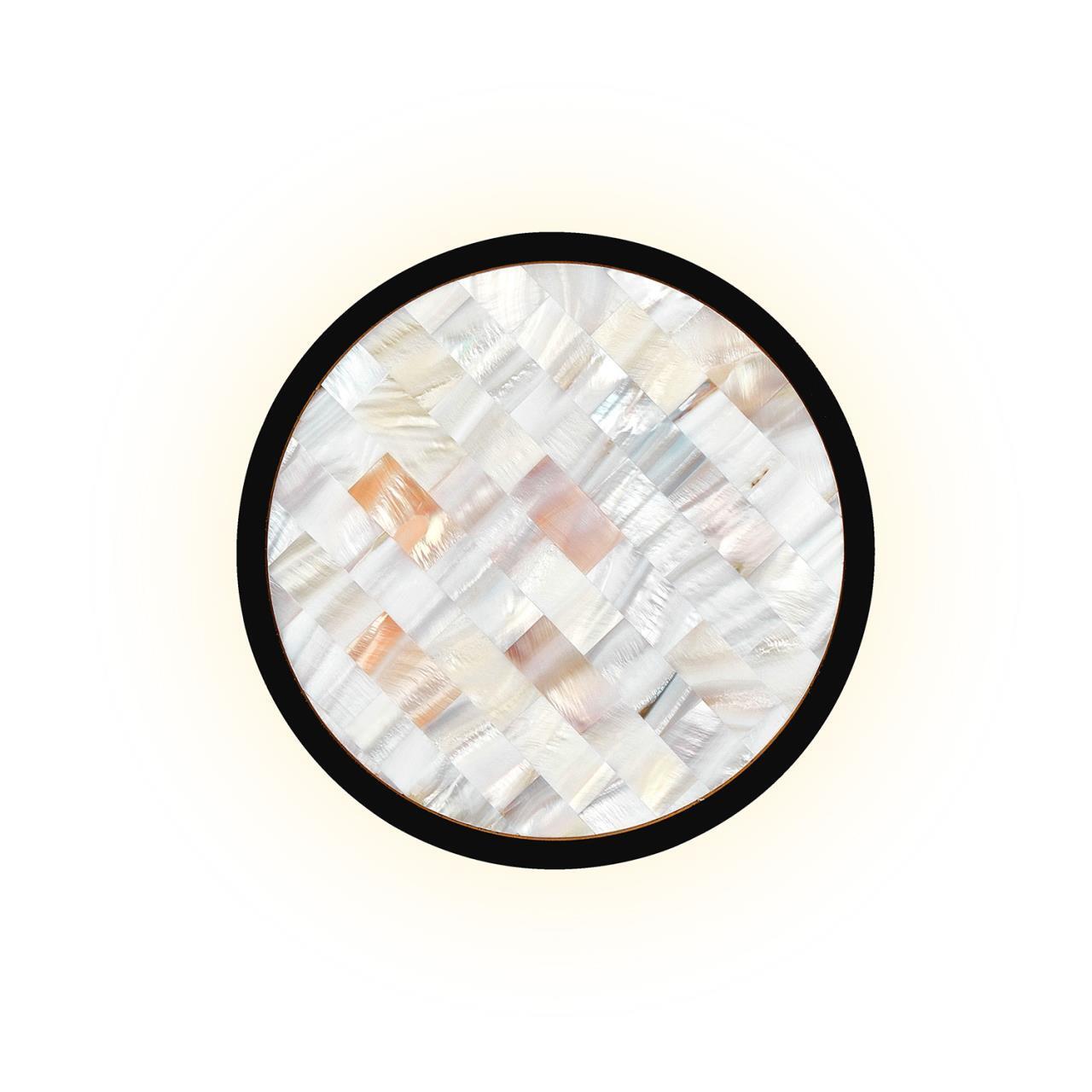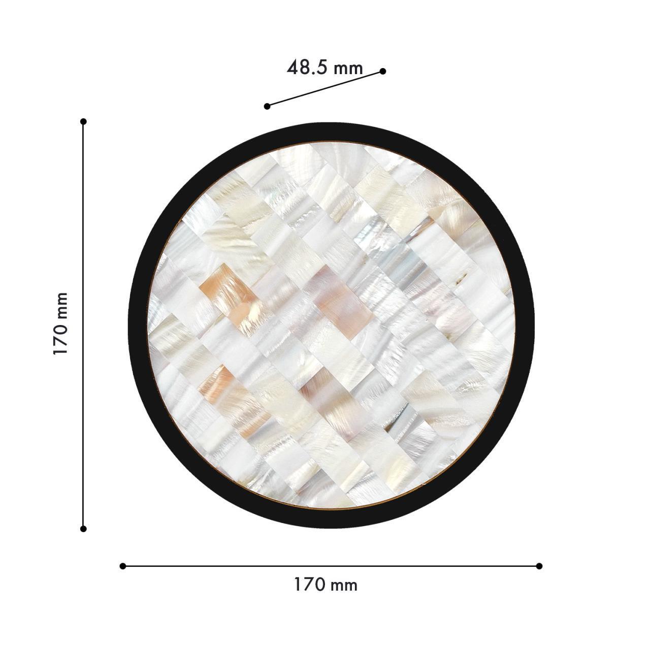 Металлический каркас черного цвета, декор из перламутровых пластин из морских ракушек.