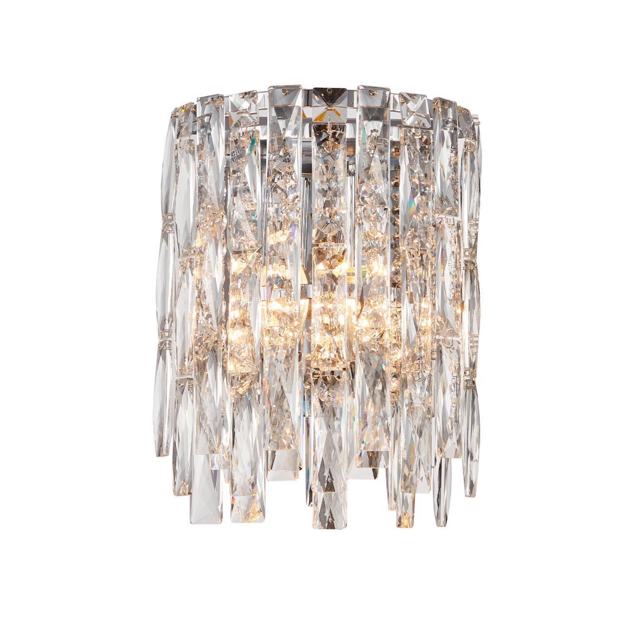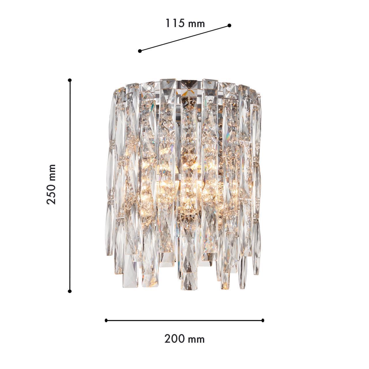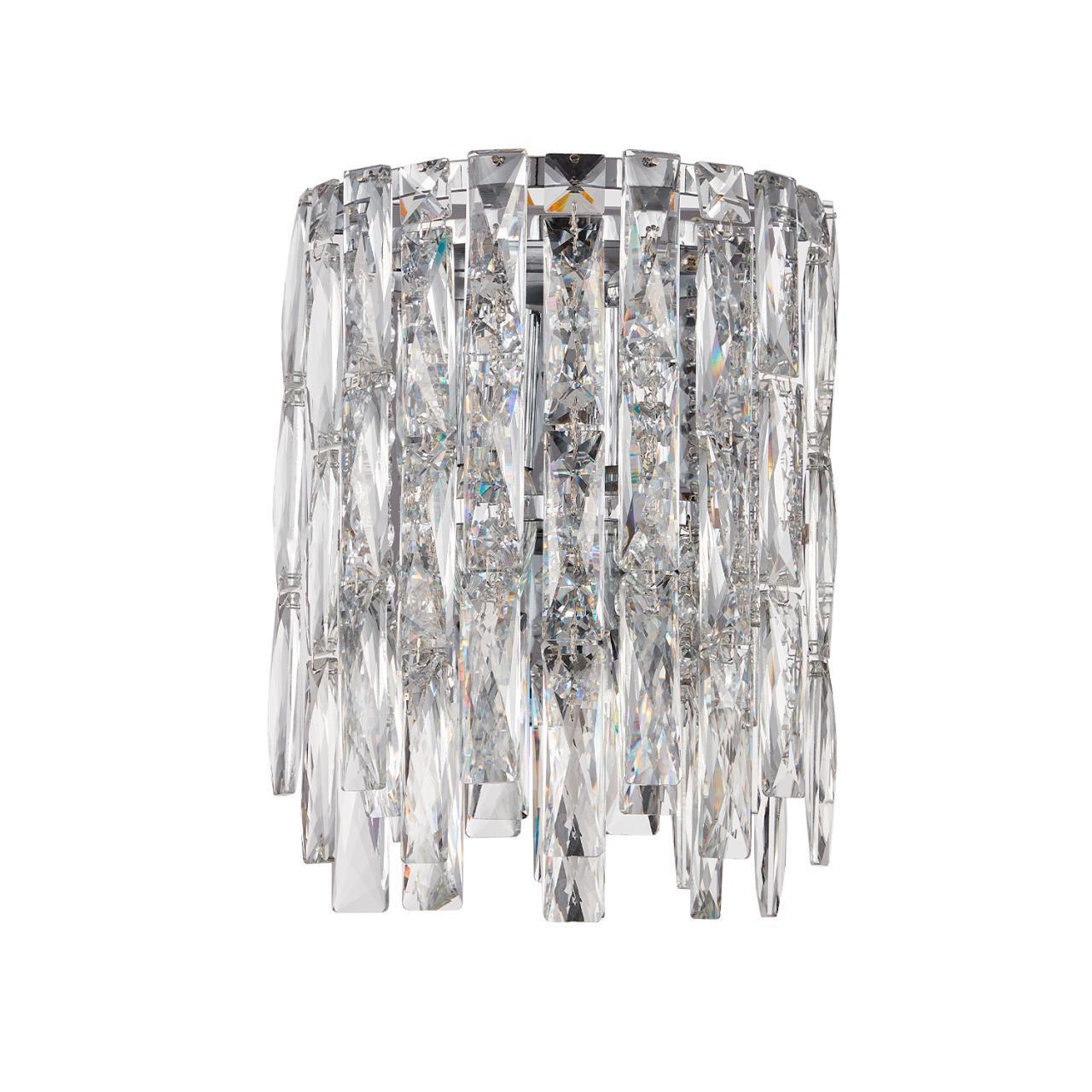 Каркас из хромированного металла, декор из свободно висящих цепочек, состоящих из скрепленных между собой, прямоугольных, трапециевидных в разрезе, пластин из прозрачного хрусталя высшего качества, лампы накаливания с возможностью замены.