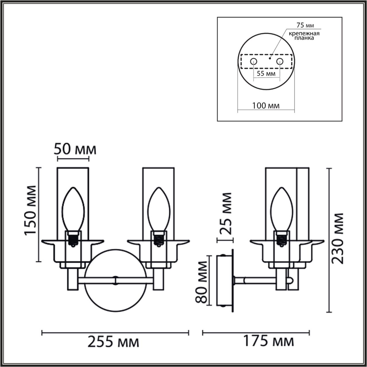 6554/2W CLASSI LN25 27 бронза/коньячный/металл/стекло Бра E14 2*40W 220V MADONNA