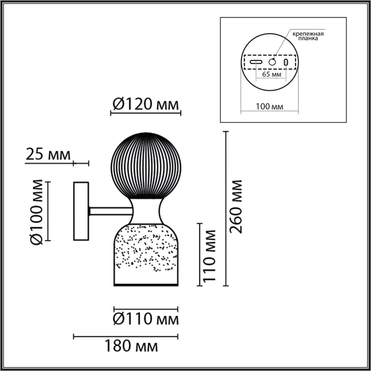 8114/2W MODERNI LN25 142 хром/дымчатый, металл/стекло Бра G9 30W + E14 40W 220V TAUNA