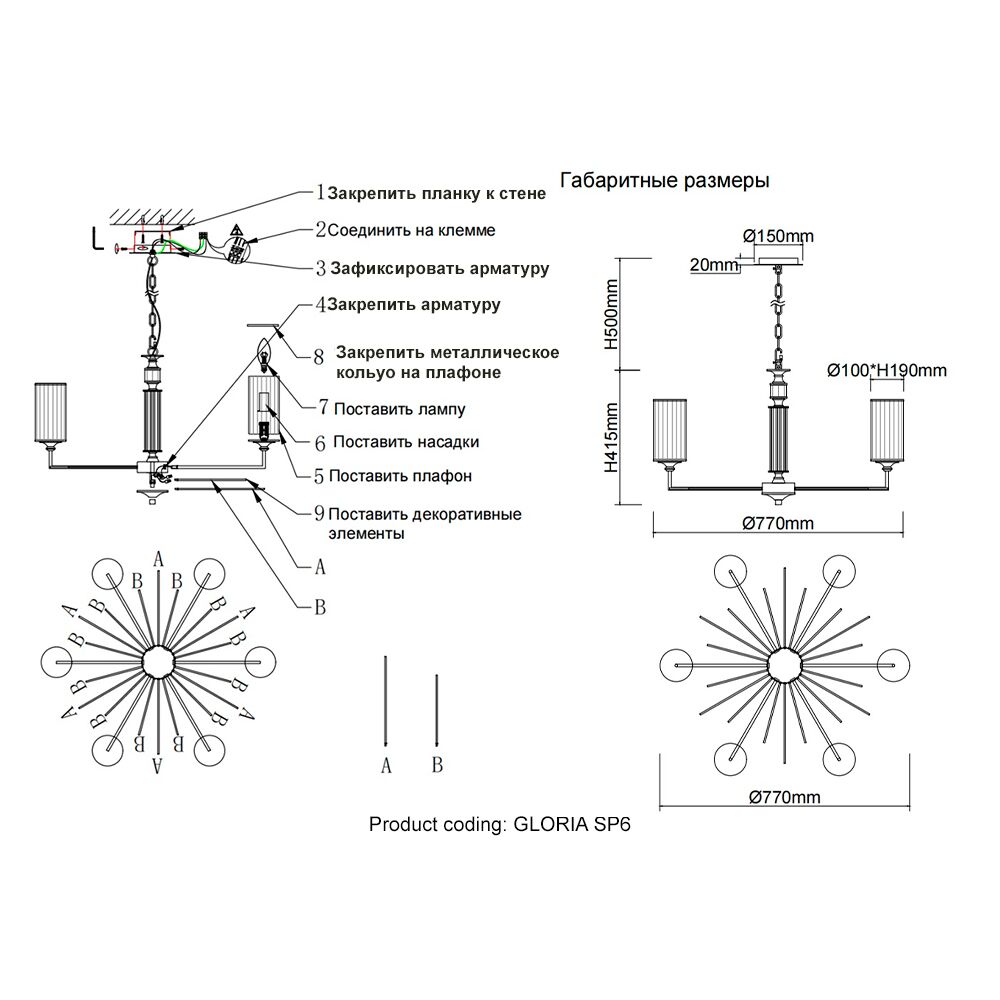 Люстра Crystal Lux GLORIA SP6 BRASS