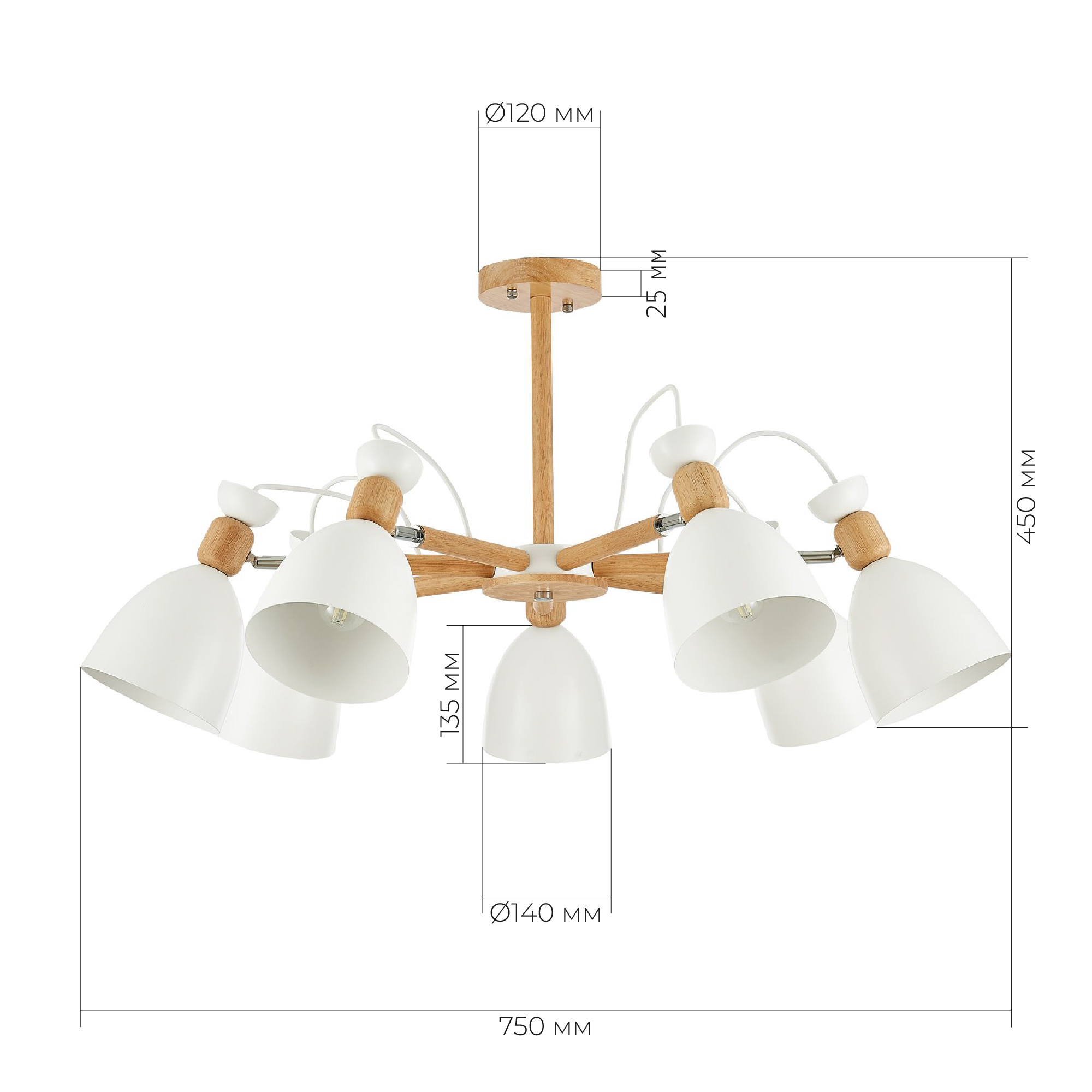 SLE103802-07 Светильник потолочный Светлое дерево, Белый/Белый E27 7*60W BALCAMO
