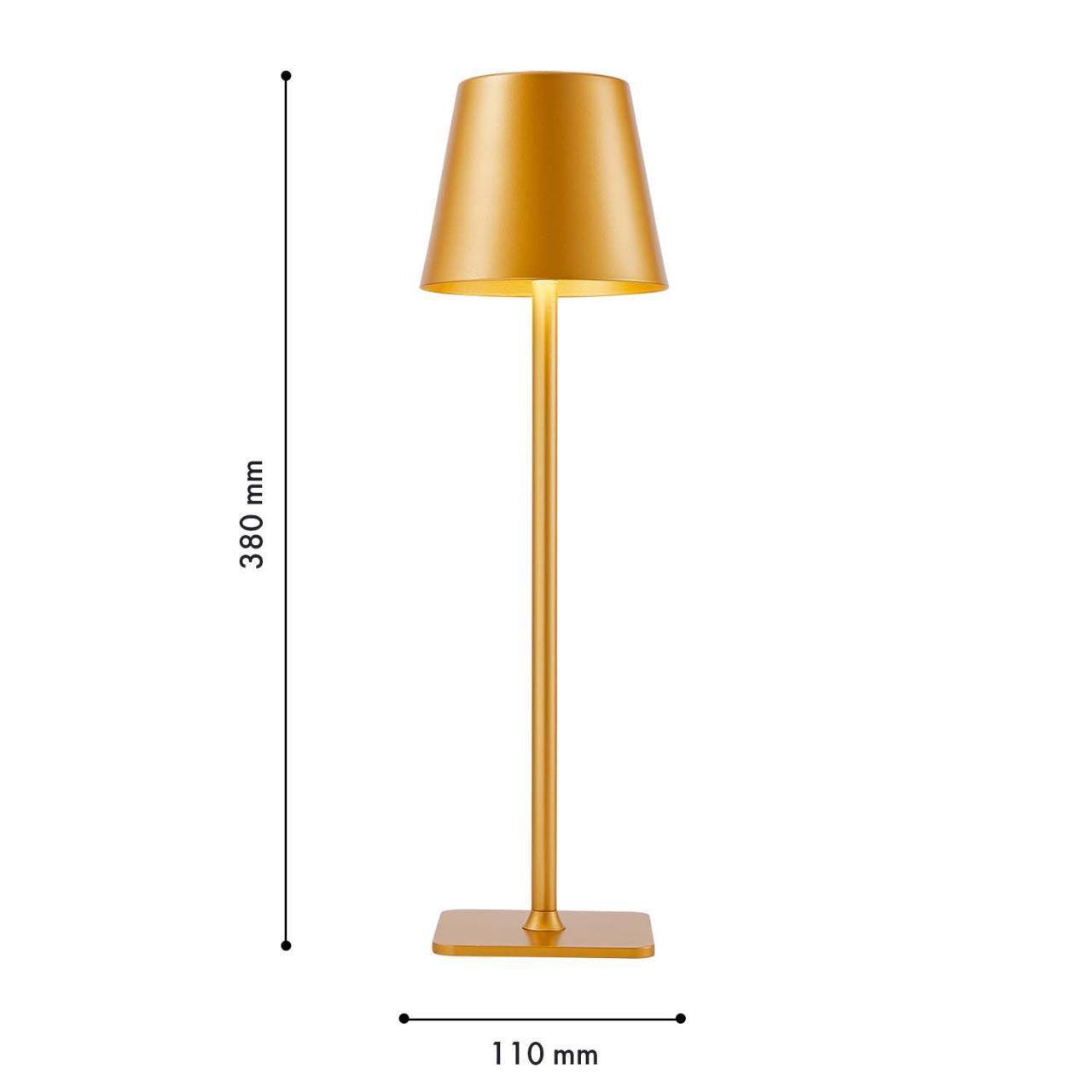 Беспроводная лампа, корпус из металла золотого цвета, рассеиватель из акрила, управление касанием, зарядка через USBпорт, LEDмодуль.