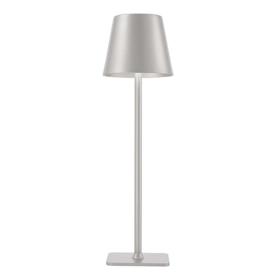 Беспроводная лампа, корпус из металла серого цвета, рассеиватель из акрила, управление касанием, зарядка через USBпорт, LEDмодуль.