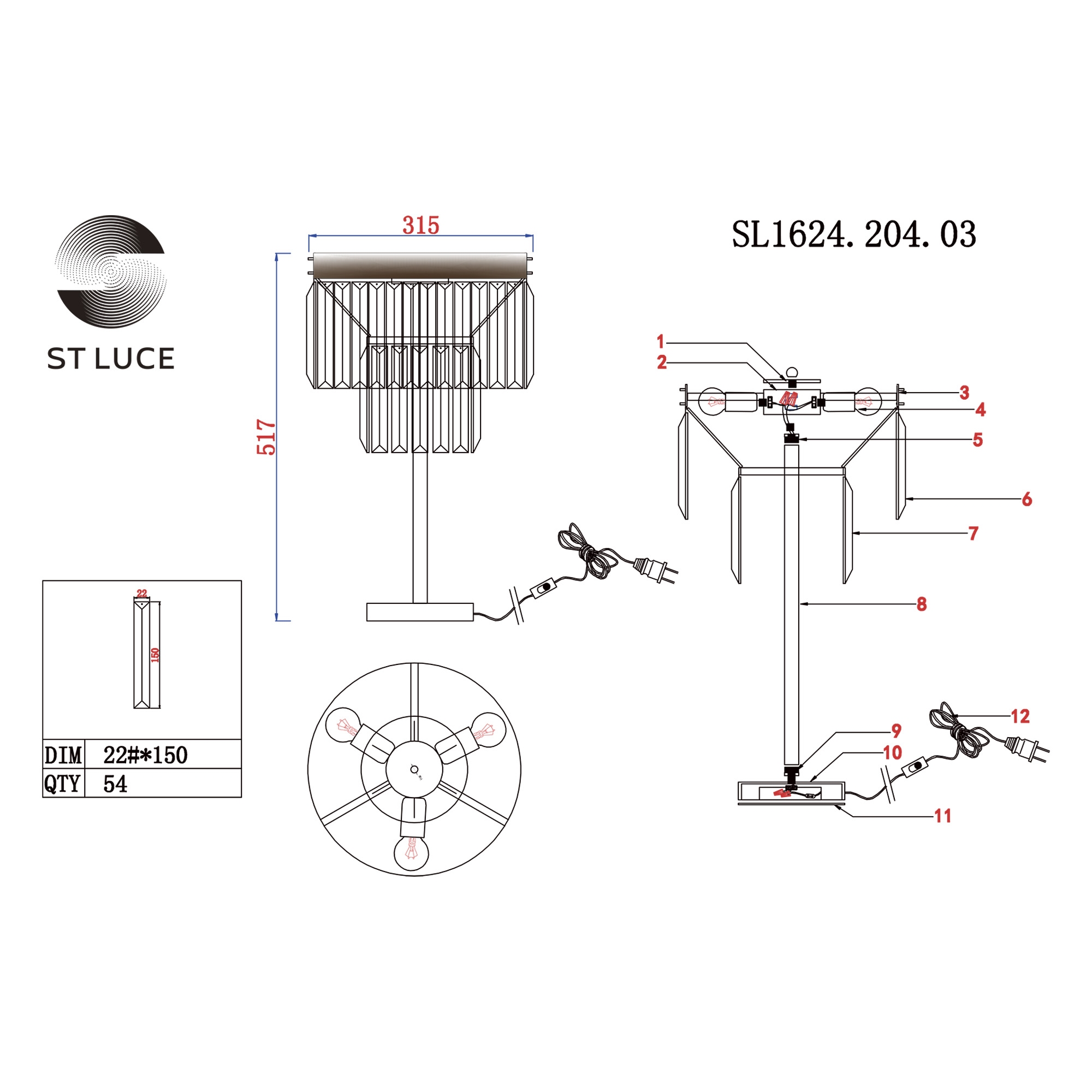 SL1624.204.03 Прикроватная лампа ST-Luce шампань/прозрачный E14 3*40W ERCOLANO