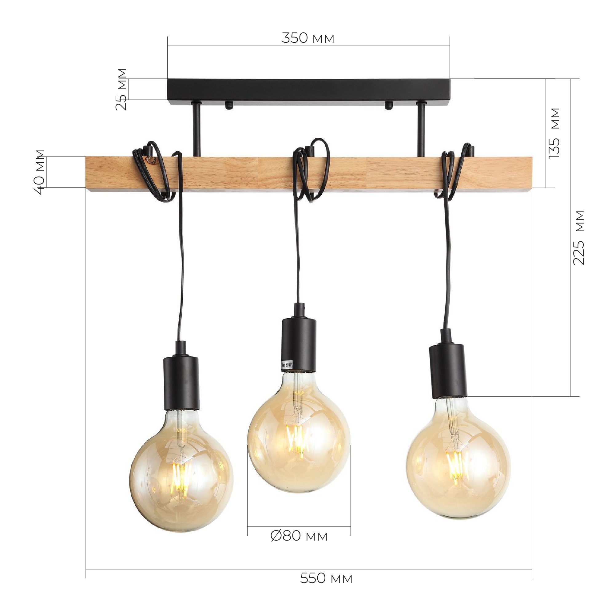 SL1142.403.03 Светильник подвесной Черный, Светлое дерево E27 3*60W BAGETTI