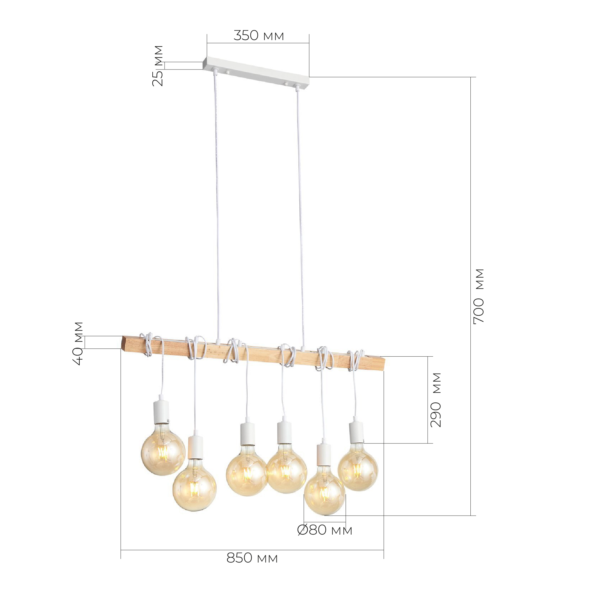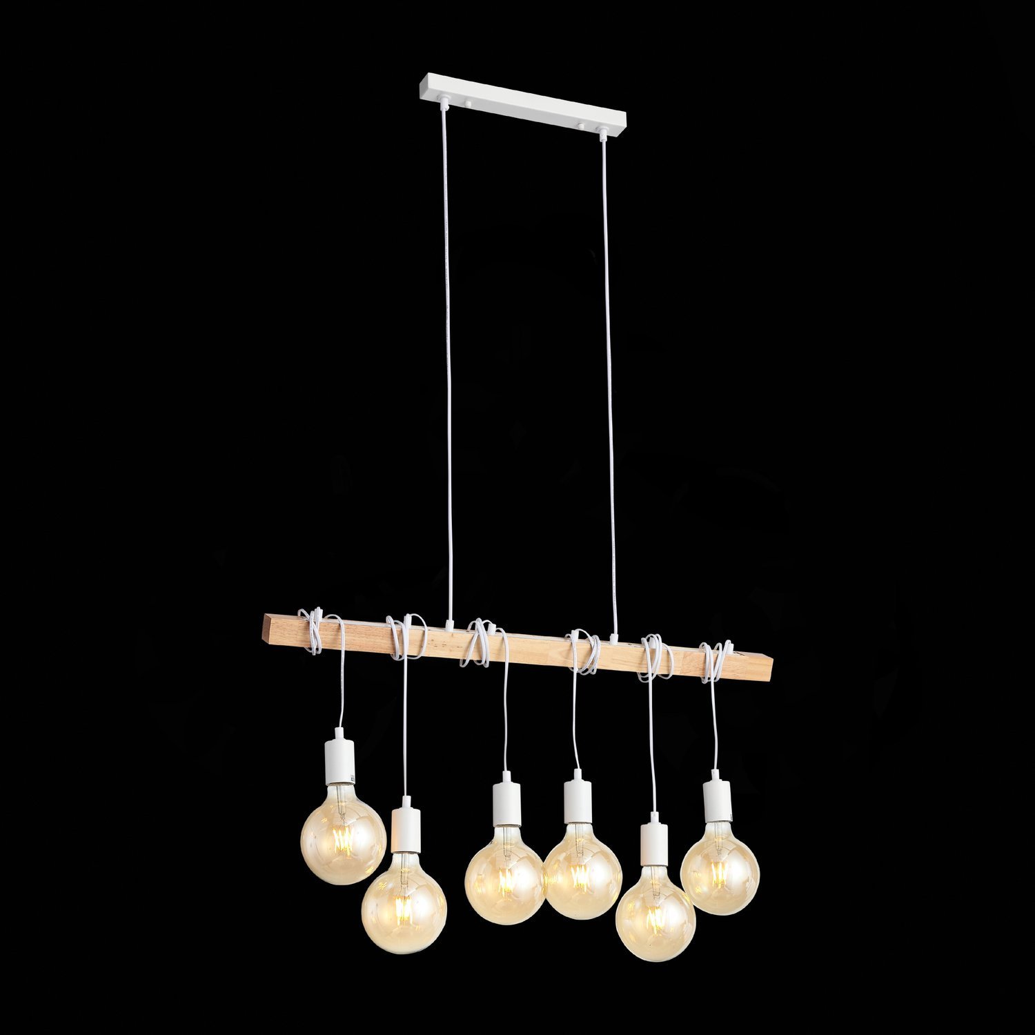 SL1142.503.06 Светильник подвесной Белый, Светлое дерево E27 6*60W BAGETTI