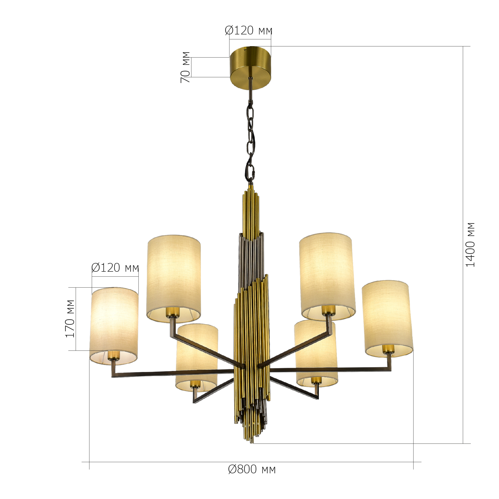 SL1638.303.06 Светильник подвесной ST-Luce Латунь/Серый E14 6*42W GLORIA