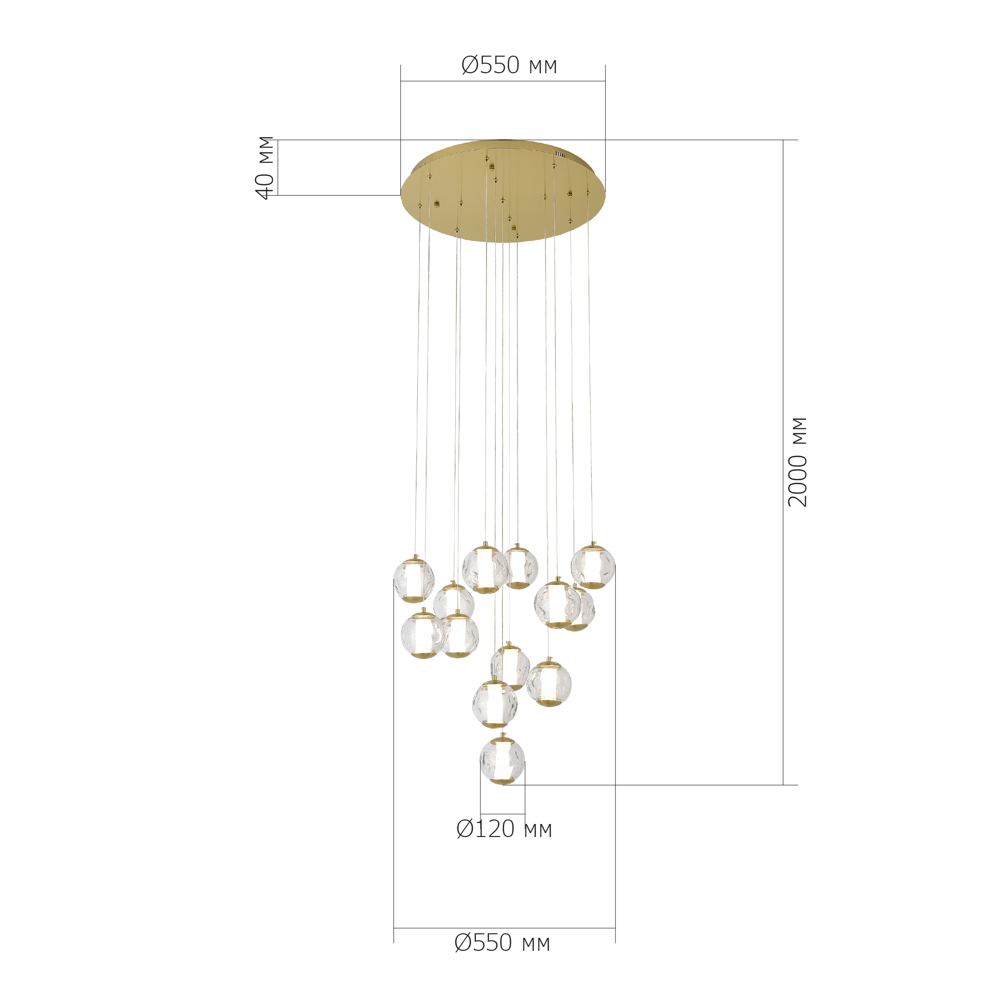 SL6520.303.13 Светильник подвесной ST-Luce латунь/прозрачный с пузырьками воздуха LED 1*65W 4000K HELMI