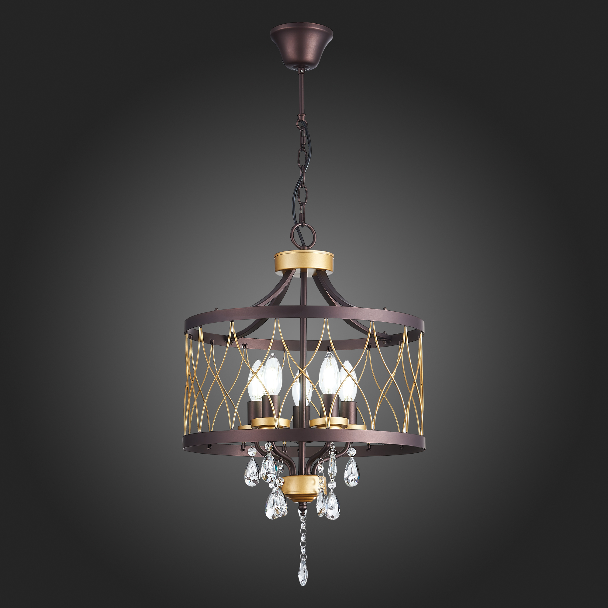 SL789.423.05 Люстра подвесная ST-Luce Темный кофе, Золото/Темный кофе, Золото, Прозрачный E14 5*60W GRASSО