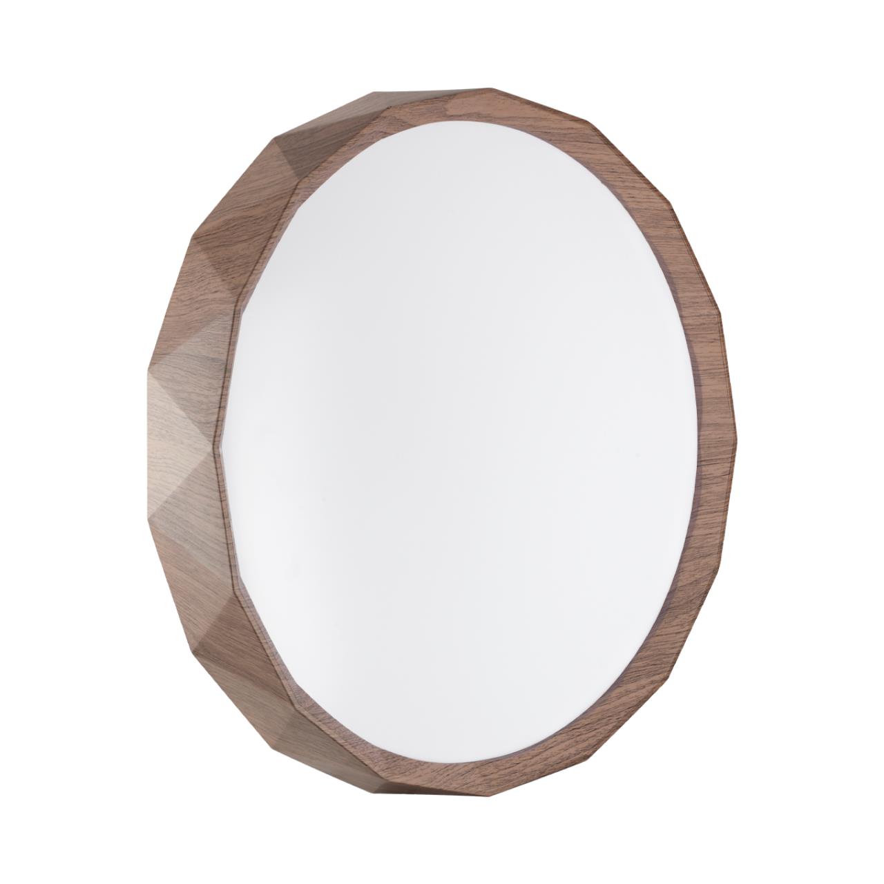 Светильник 7637/AL линии ZIF WOOD состоит из металлического основания (базы) и пластикового рассеивателя. Материал рассеивателя - высококачественный пластик марки PMMA 2.0 белого цвета с матовой поверхностью, обеспечивающий светильнику равномерное рассеивание и хорошее светопропускание. Форма плафона: круглая, декорирована ободом "под дерево" из пластика коричневого цвета. Степень защиты IP43 позволяет использовать светильник в определенных зонах влажных помещений. В комплект входит заменяемый LED модуль с линзами, мощностью 18Вт, которая соответствует лампе накаливания 140Вт. Источник света имеет комфортную цветовую температуру 4000К (белый свет).