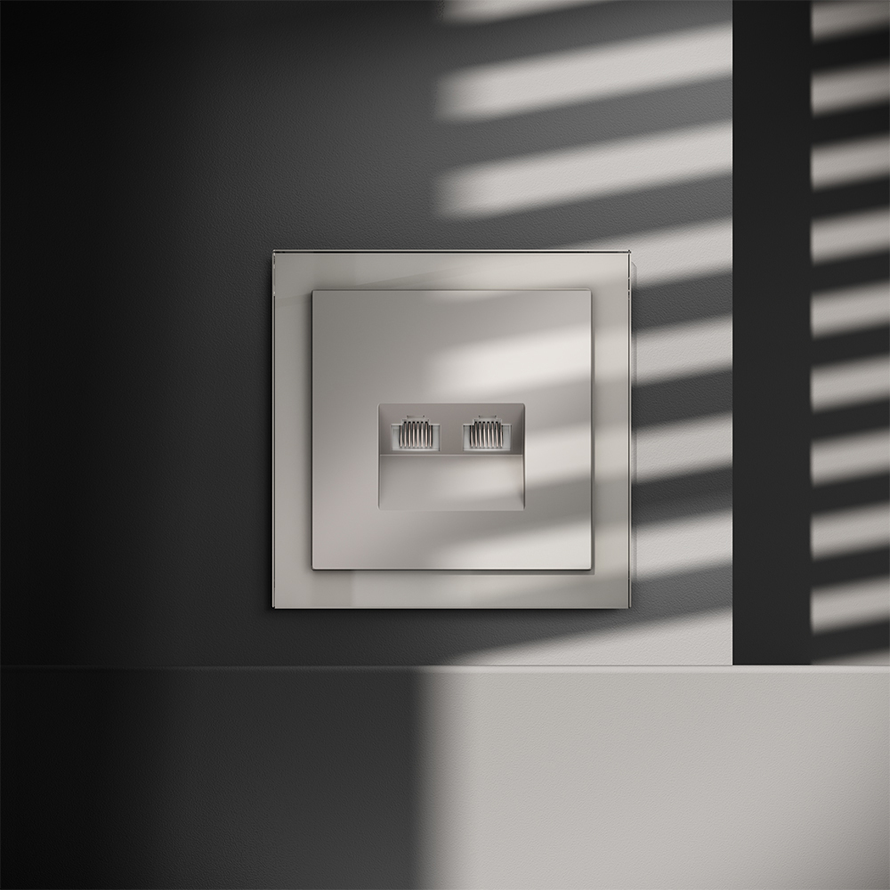 Место установки. Компьютерные розетки применяются в домашних и офисных сетях для подключения персонального компьютера, принтера, роутера или любого другого сетевого устройства к современным информационным системам. Корпус. Розетка выполнена в фирменной стилистике Voltum. Внешние материалы — это поликарбонат высокой прочности. Устройство оборудовано специальным сетевым разъемом (или сразу двумя у модели RJ45+RJ45). Конструктивные особенности. Компьютерная розетка RJ45 совместима с информационными сетями шестого поколения со скоростью передачи данных до 10 Гбит/сек. Также она поддерживает стандарт 5e. Подключение к конечному устройству выполняется через сетевой кабель (витую пару)